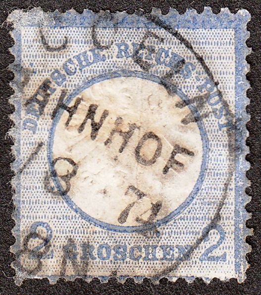 Diese nach links unten dezentrierte MiNr. 20 wurde im August 1874 entwertet per Kreisstempel "COELN BAHNHOF":