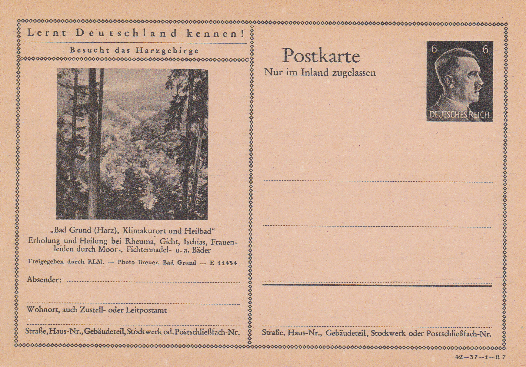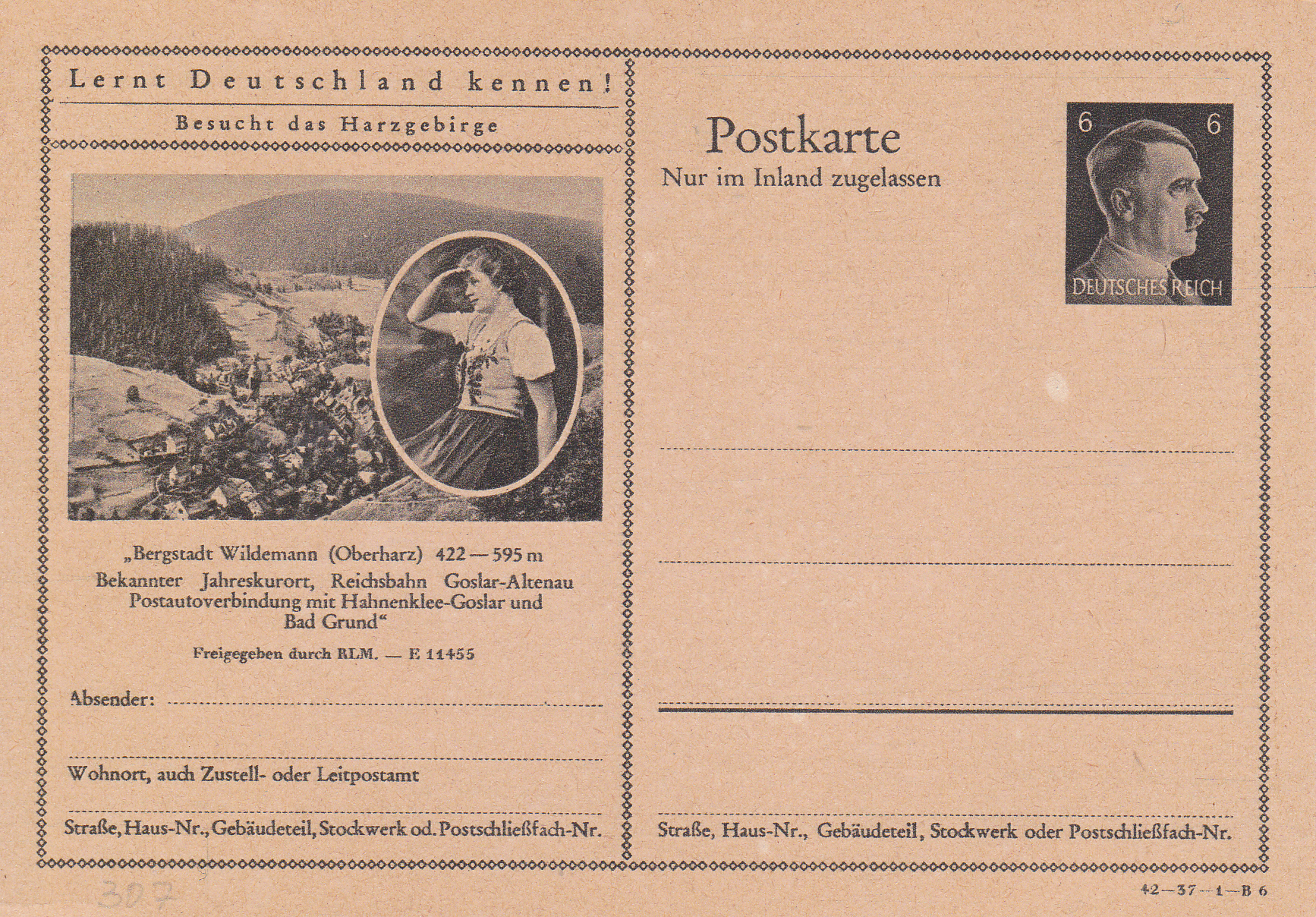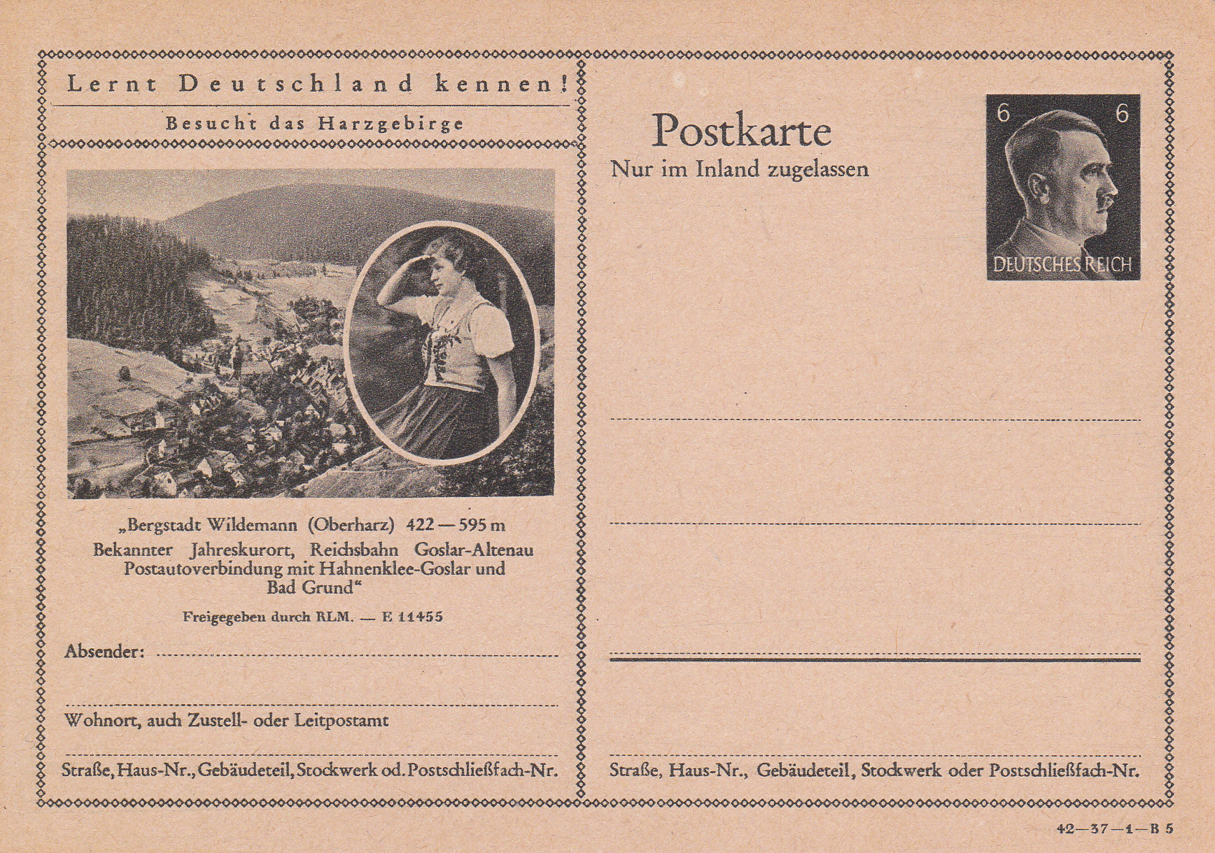 Die ehemals freie Bergstadt Wildemann (seit dem 1. Januar 2015 eine Ortschaft der Berg- und Universitätsstadt Clausthal-Zellerfeld, Landkreis Goslar in Niedersachsen (Deutschland)) stellt sich auf dieser Bildpostkarte (Serie 37 Bild 4) als Kurort vor.