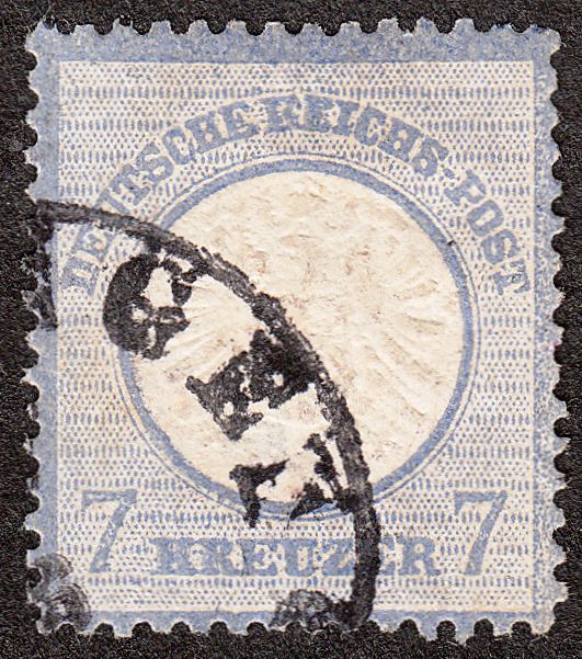 Und gleich noch eine Marke aus dieser Tüte, eine MNr. 26, entwertet per nachverwendetem Thurn & Taxis-Kreisstempel USINGEN, die ebenfalls das Phänomen "gepunktete Druckausfälle" zeigt, bei dieser Marke zu finden im Rahmen rechts: