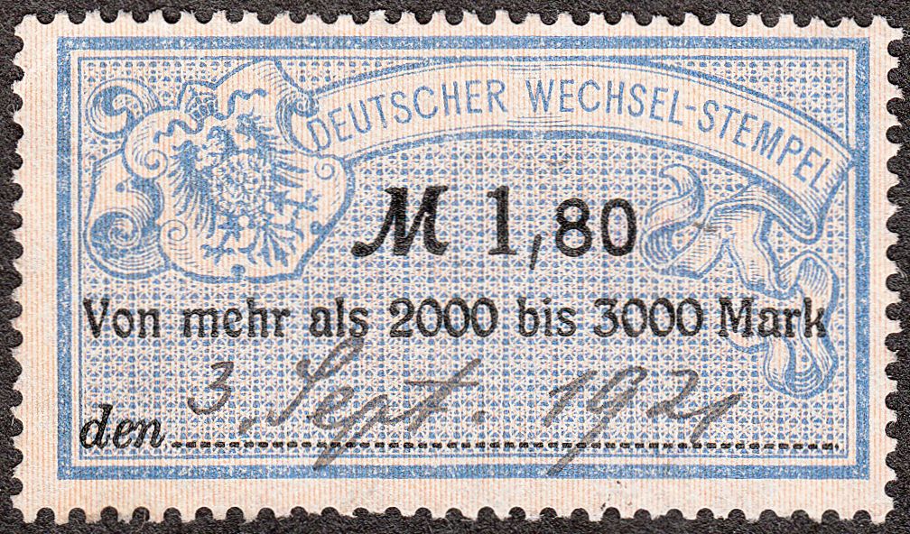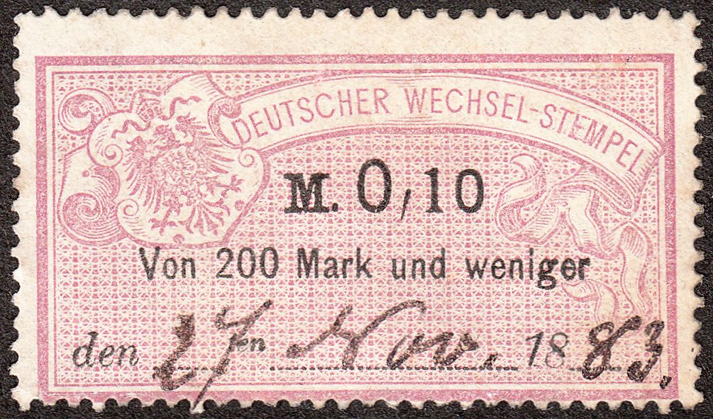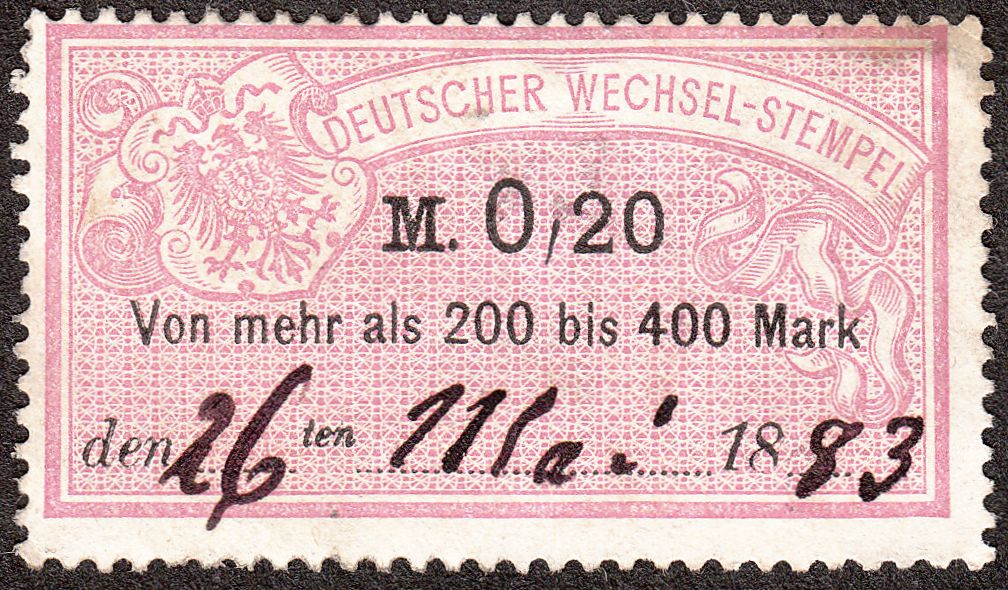 Um die gezahlte Wechselstempelsteuer zu dokumentieren wurden solche Gebührenmarken mit der Inschrift "DEUTSCHER WECHSEL-STEMPEL" sowie einem Reichsadler mit Brustschild als Motiv auf der Rückseite des Wechsels verklebt und handschriftlich durch Eintragen des Tagesdatums entwertet.