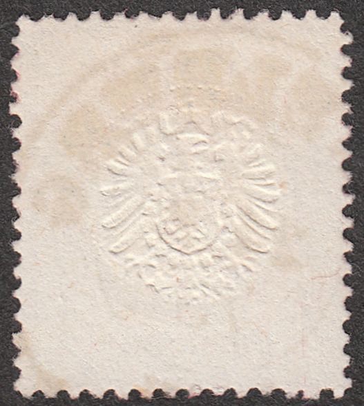 Diese am 26.08.1874 per nachverwendetem sächsischem Zweikreisstempel "RONNEBURG" entwertete MiNr. 19 XXIII a zeigt den Plattenfehler "Akzent über "C" in "REICHS-" auf der 1. Strichelleiste":