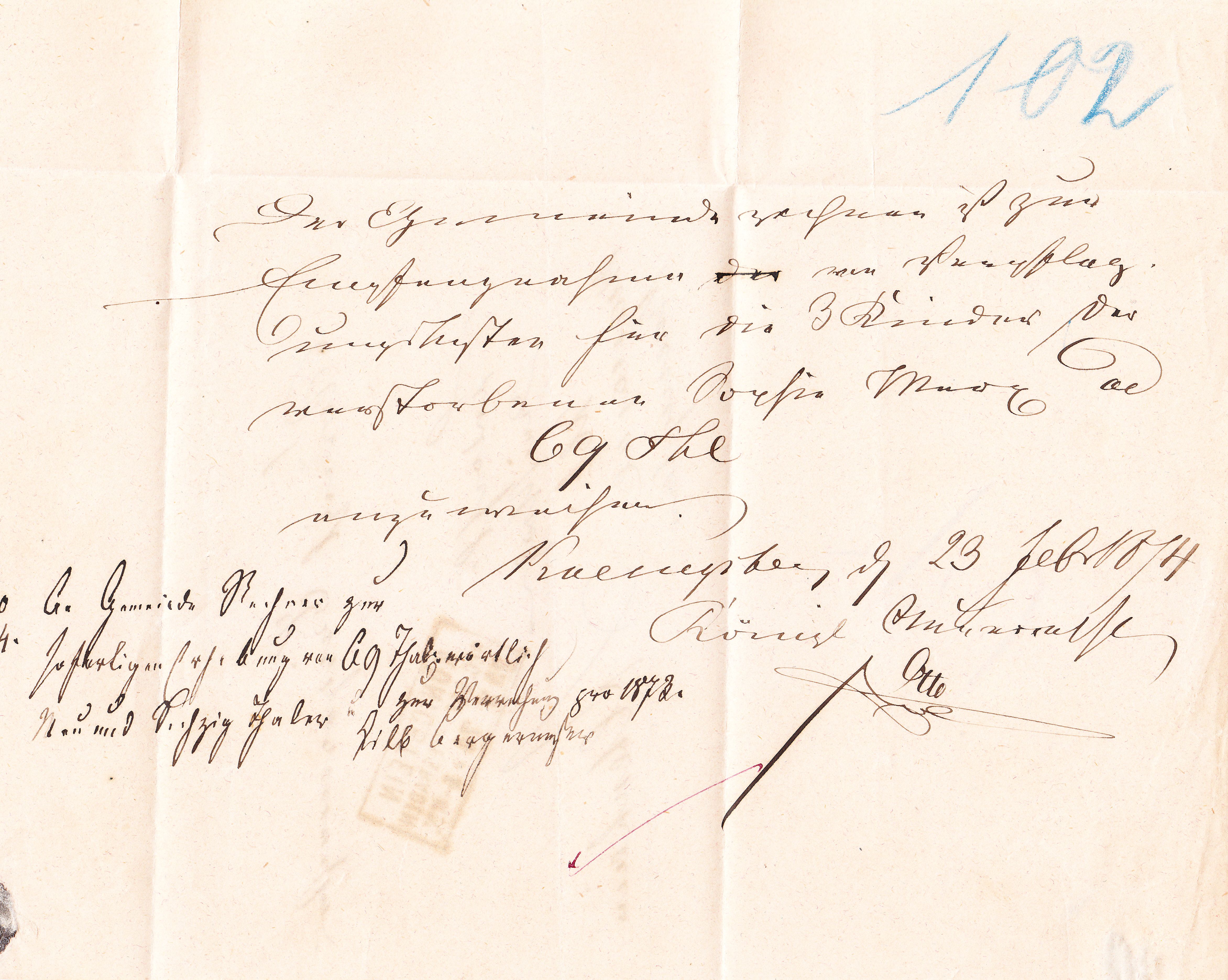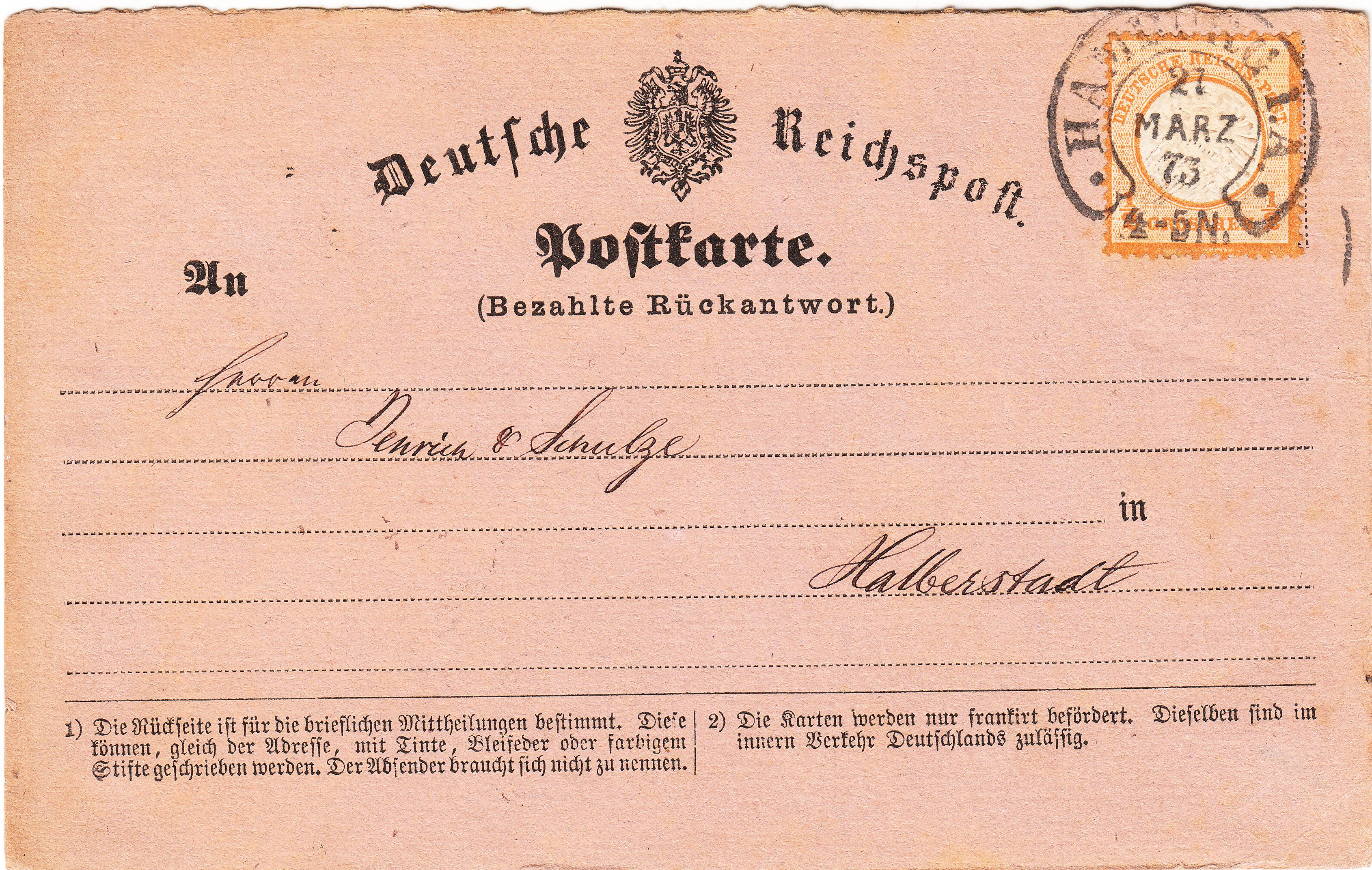 Unten links wurde handschriftlich vermerkt "frei lt Aversum No. 1". Die Aversum-Nr. 1 war am 01.01.1870 im Herzogtum Sachsen-Meiningen in Kraft getreten.