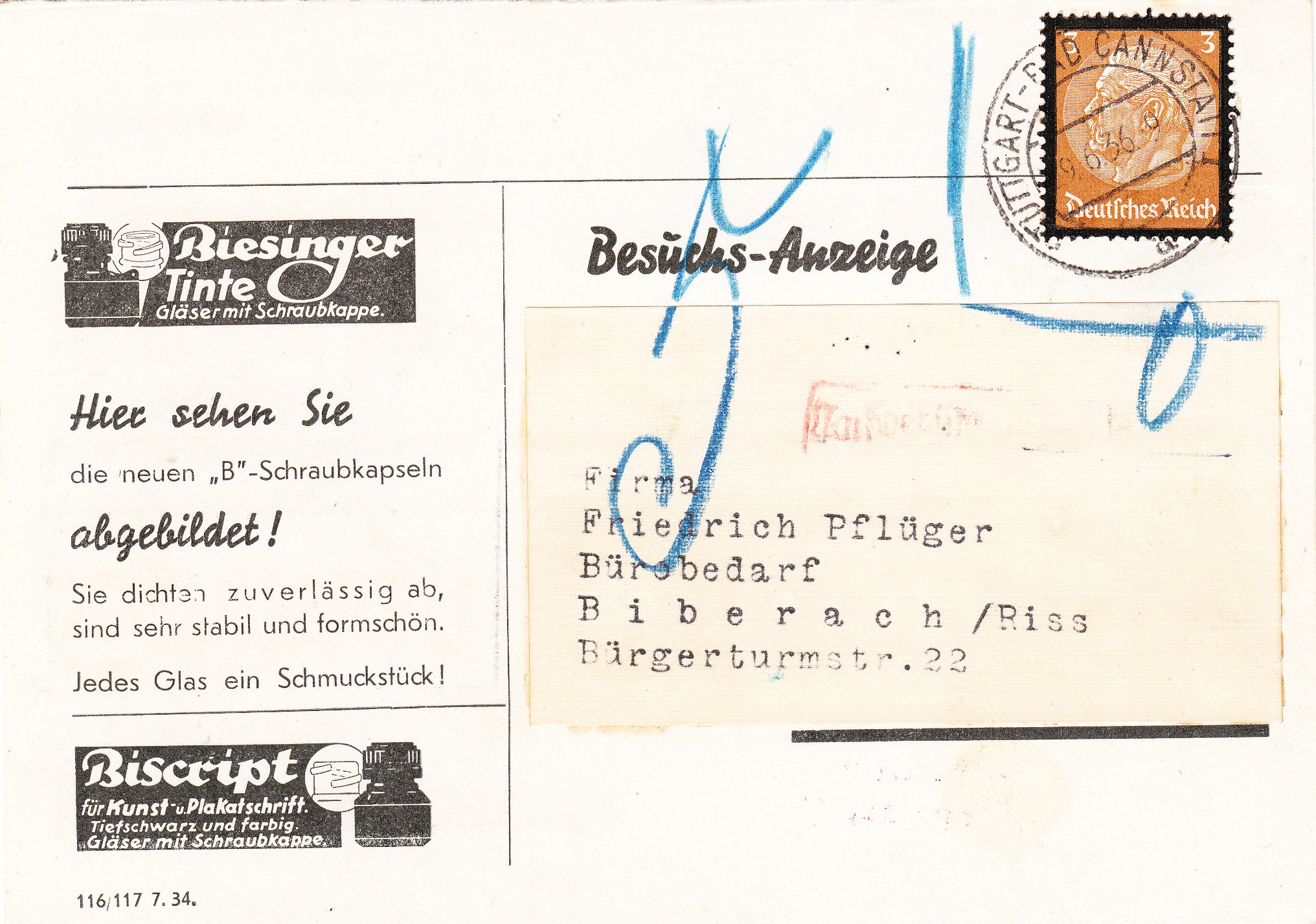 Vielen Postkunden war dieser Umstand nicht bekannt und so kam es zu späteren Verwendungen wie dieser einer Marke der Wertstufe 3 Pfennig, MiNr. 548, als Einzelfrankatur am 29.06.1936 auf einer Drucksache: