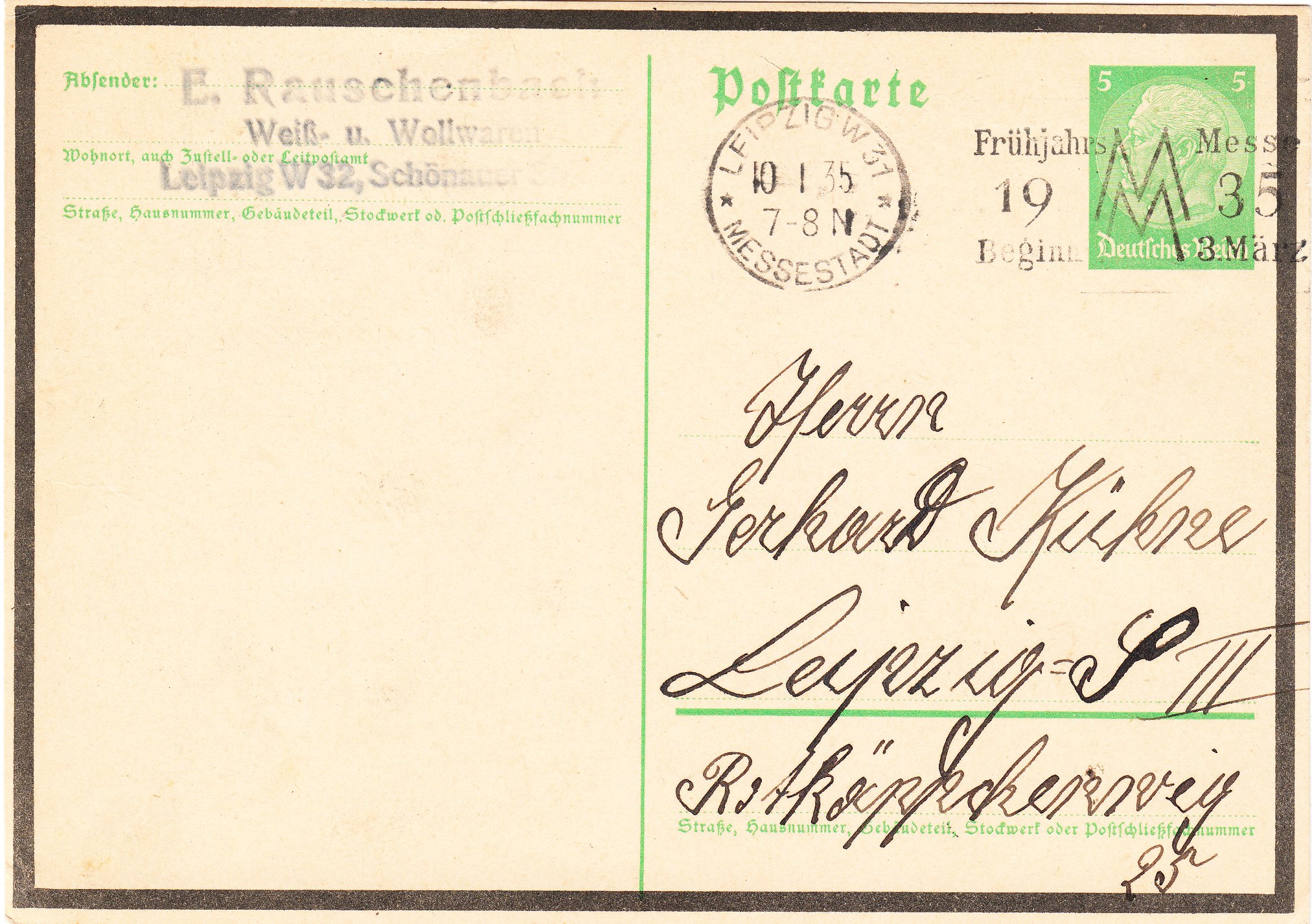 Zum Tode des Reichspräsidenten von Hindenburg erschienen neben den Briefmarken mit Trauerrand auch Postkarten mit Trauerrand.