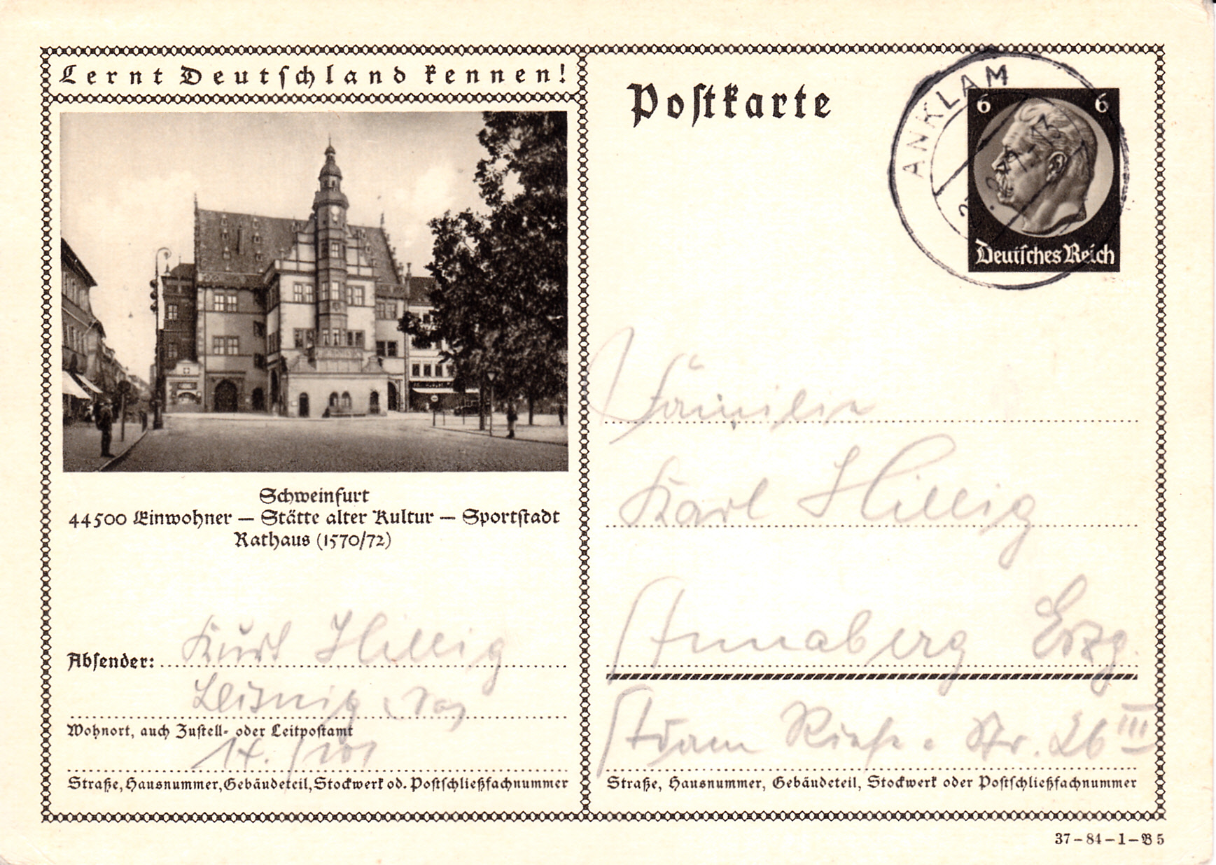 Ein Foto mit dem Altem Rathaus am Markt in Schweinfurt sehen wir auf dieser Karte (Serie 84 Bild 5).