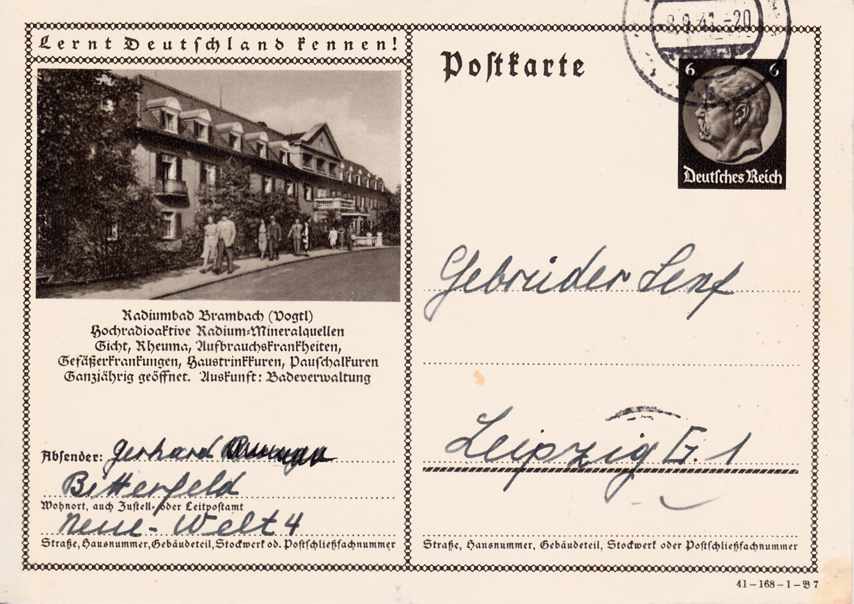 Es gibt 1941 auch wieder weitere bildgleiche Karten mit anderen Druckvermerken.