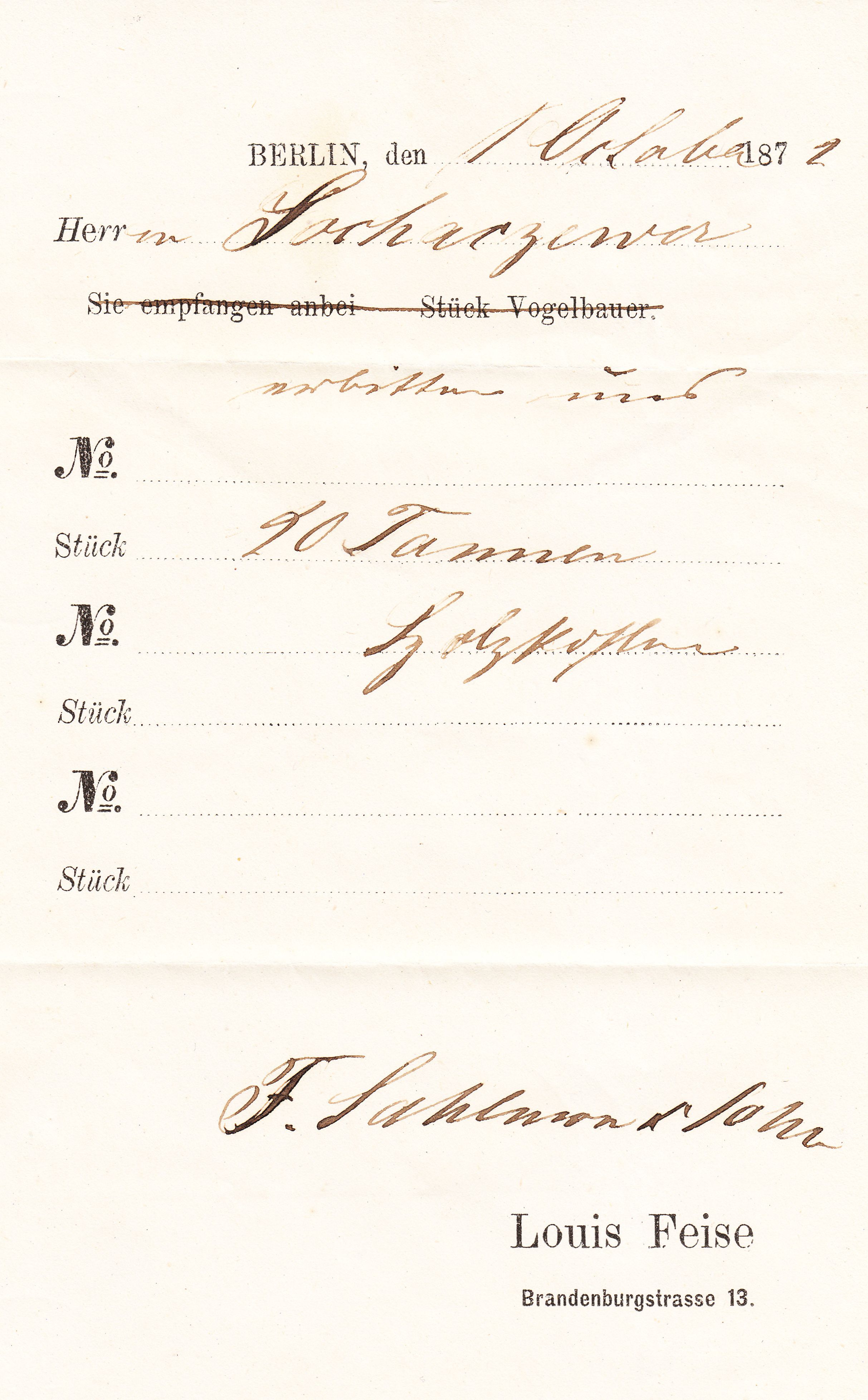 Die Postgebühr für einen Brief bis 15 Gramm betrug im Stadt-Bezirk Berlin 1 Groschen, die in diesem Falle bei der Briefaufgabe bar bezahlt und per Rotstift als "1" vermerkt wurde. Bereits vom Absender bezahlte Postgebühren = "Franko" wurden in Rot auf der Sendung vermerkt, vom Empfänger zu zahlende Postgebühren = "Porto" wurden hingegen in Blau vermerkt.