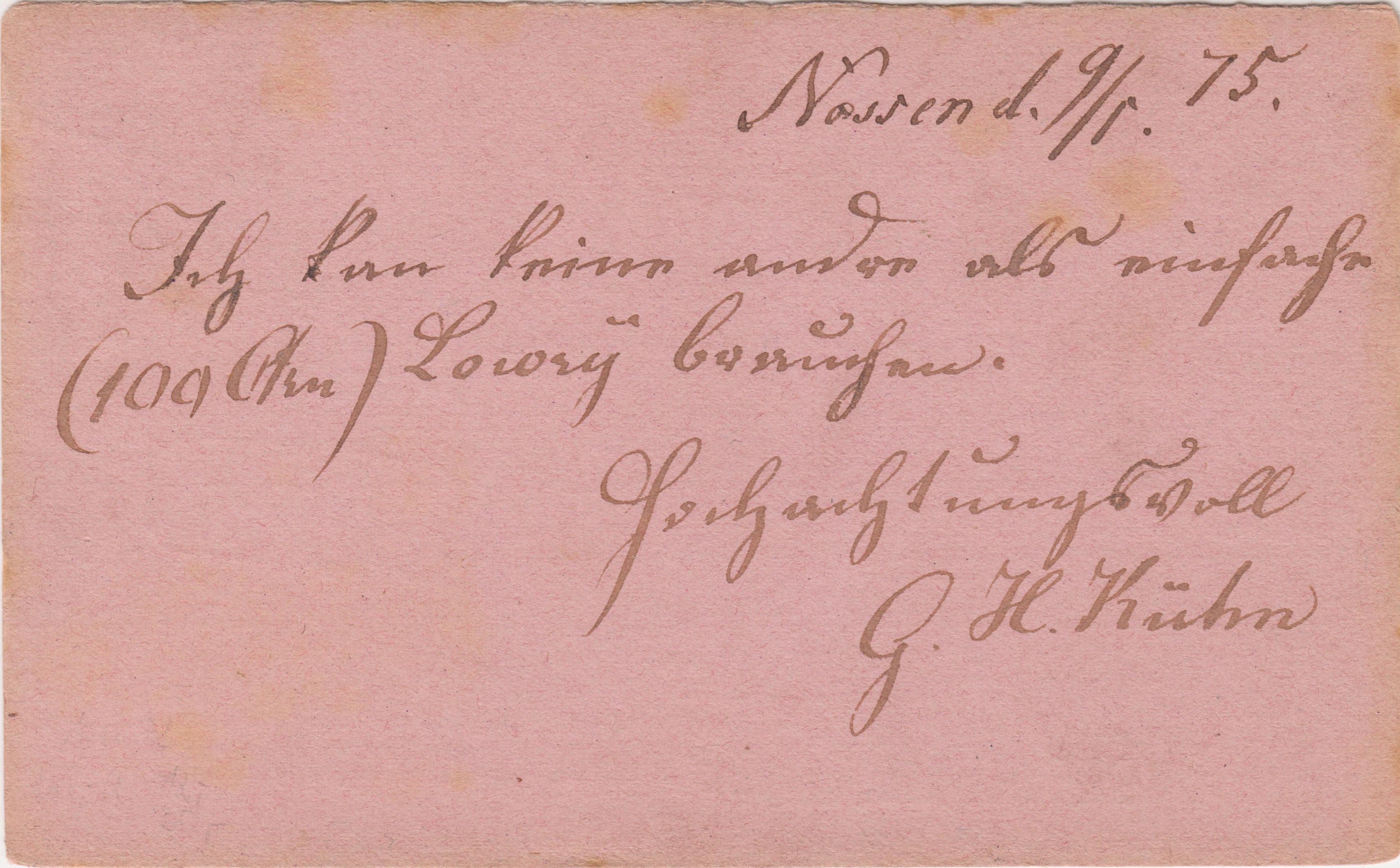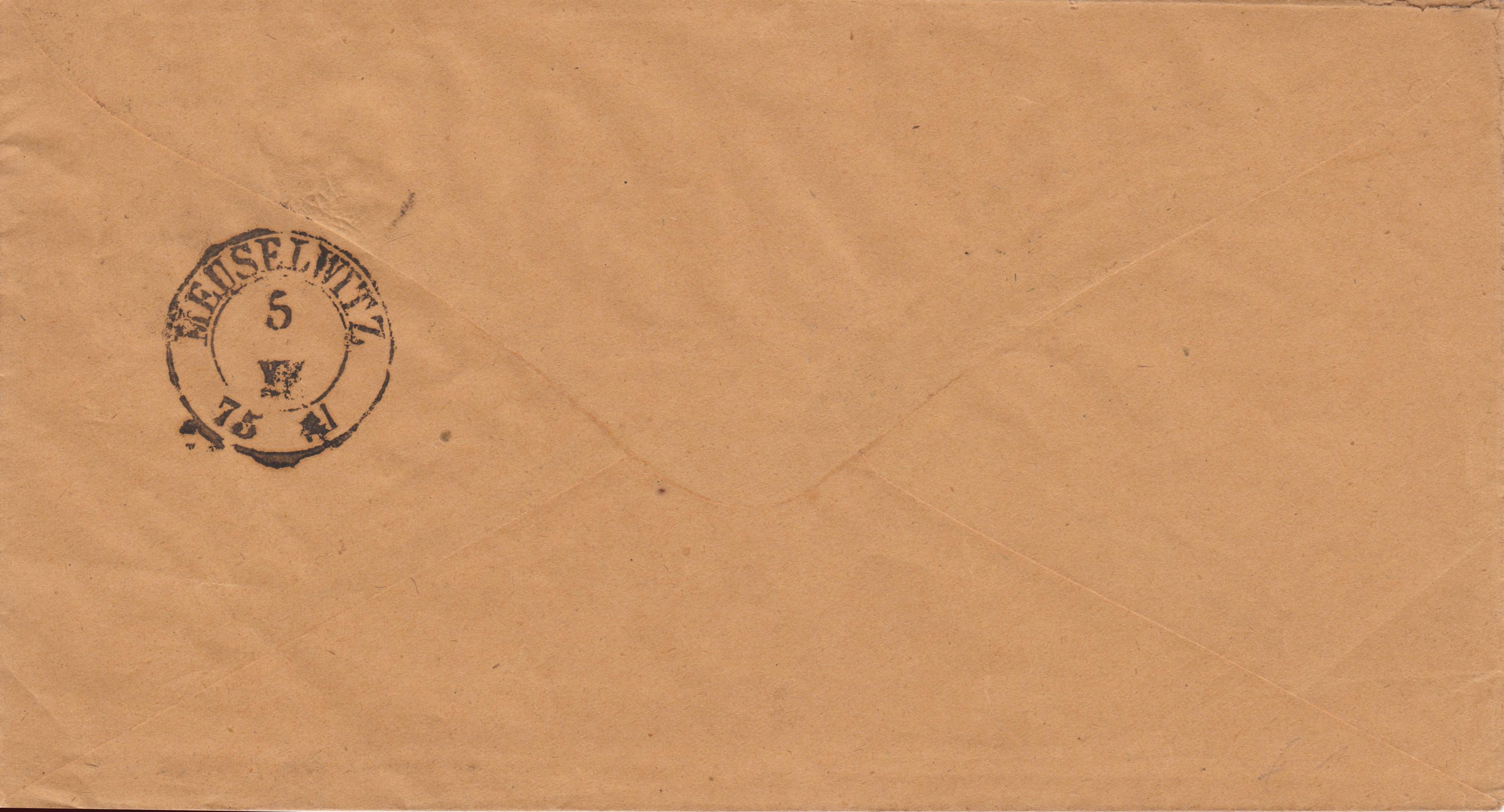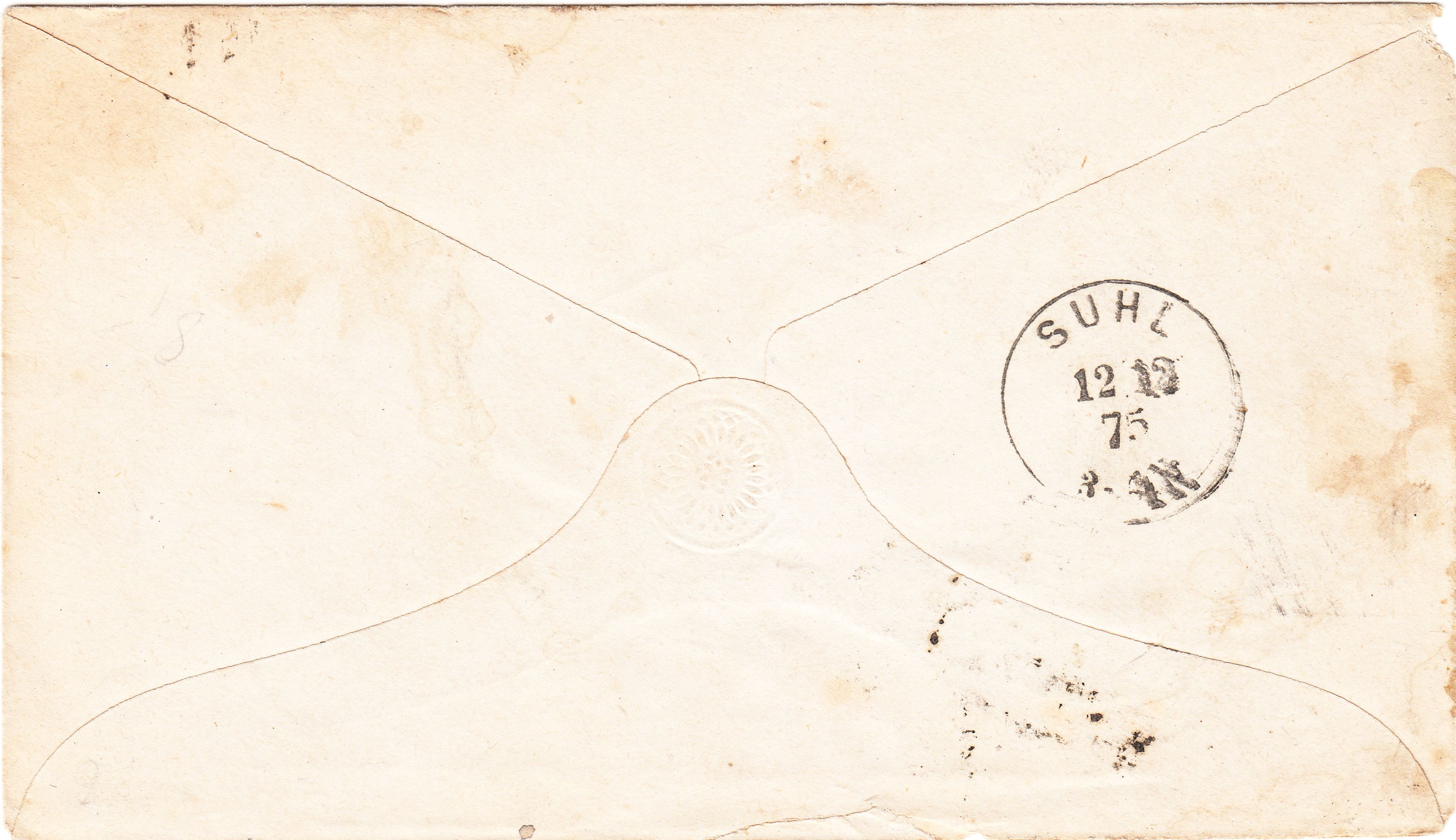 Rückseitig findet sich ein Kreisstempel "BERLIN P.E.21" vom 01.10.1872 "7-8N" sowie ein Kreisstempel "AUSG. 1 10 6 - 7 N".