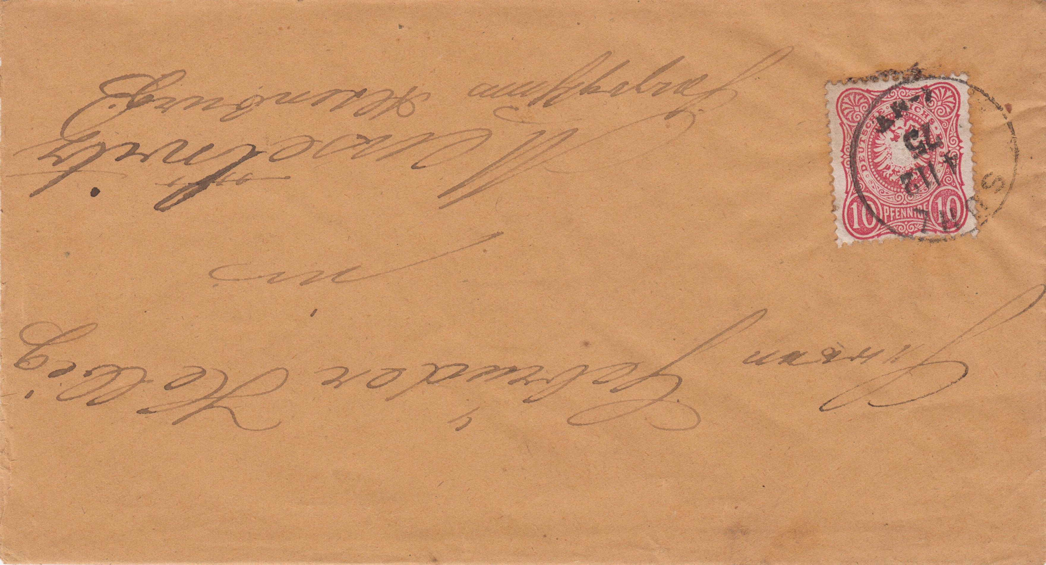 Bei der hier gezeigten Postsendung handelt es sich um einen Brief, gelaufen im Ortsverkehr Berlins, der am 01.10.1872, also zur Zeit des Deutschen Reiches und somit während der Gültigkeitsdauer der Brustschildmarken, adressiert nach "Alt-Moabit 19" in der Postexpedition 42 in Berlin aufgegeben wurde.
