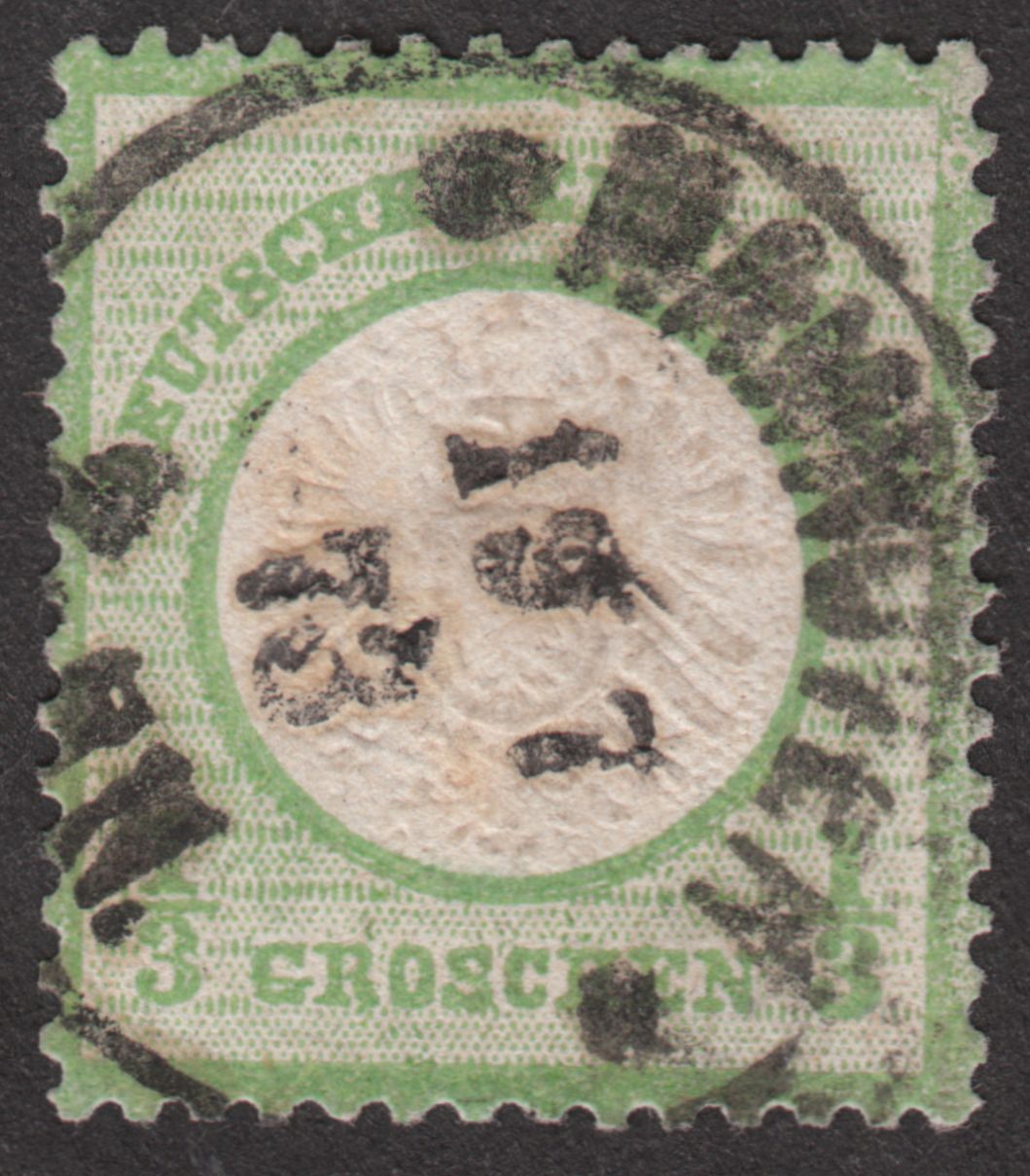 Diese MiNr. 17 wurde am 19.07.1873 entwertet per nachverwendetem NDP-Kreisstempel HANNOVER, Feuser NDP 447: