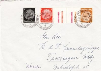 Sendungsart "Geschäftspapiere" am 07.04.1938 von Duisburg nach Plettenberg: