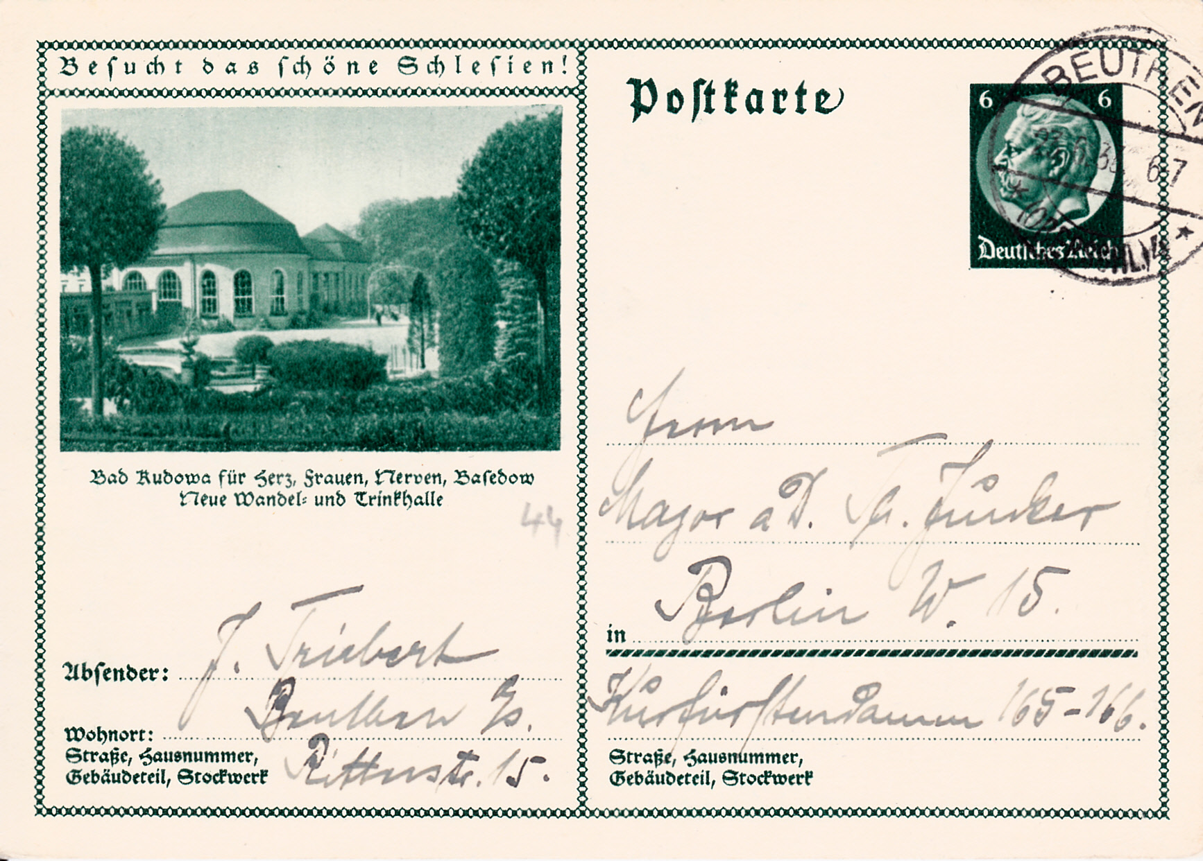 Die Wandel- und Trinkhalle in Bad Kudowa ist auf dieser Karte (MiNr 221/44) zu sehen. Kudowa-Zdrój Bad Kudowa (älter auch Bad Cudowa, tschechisch Chudoba auch Lázně Chudoba) heißt heute Kudowa-Zdrój und ist ein Kurort im Powiat Kłodzki in der Woiwodschaft Niederschlesien in Polen. Es ist eines der ältesten Heilbäder des Glatzer Landes und Niederschlesiens.