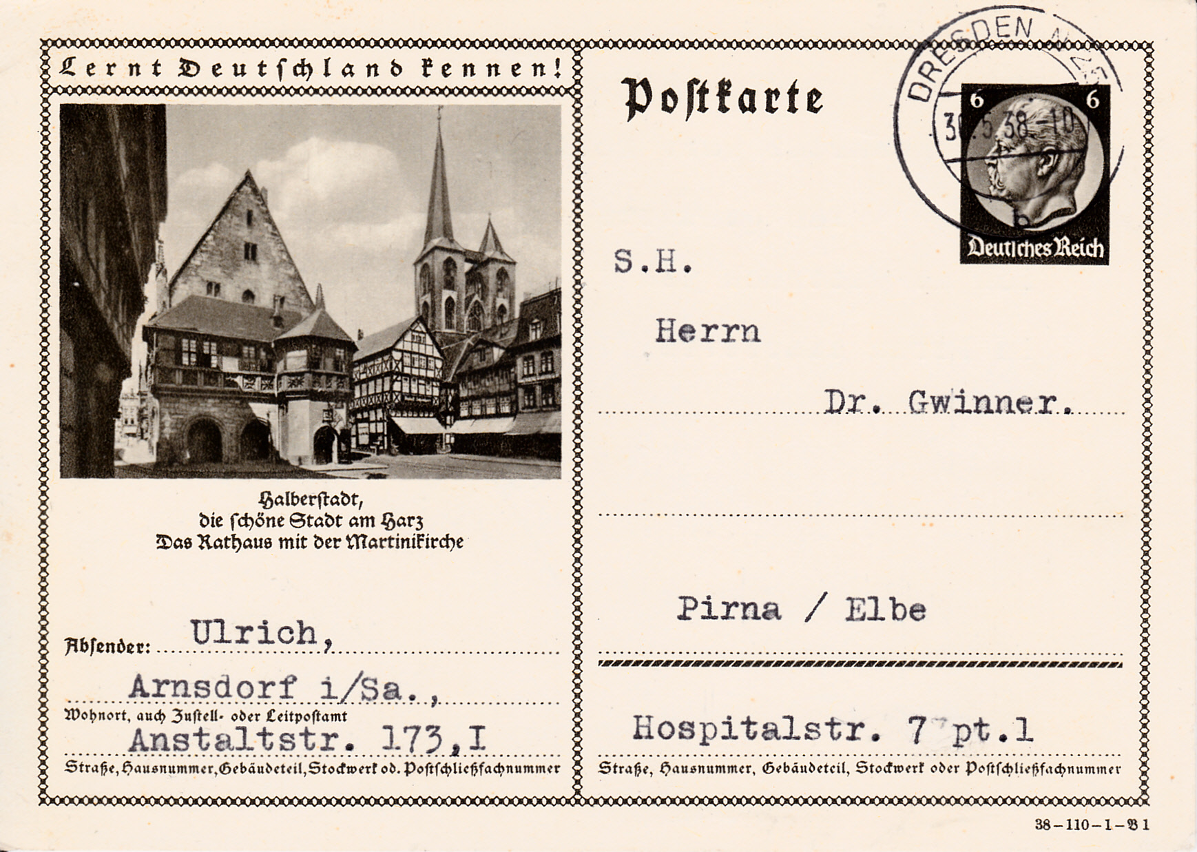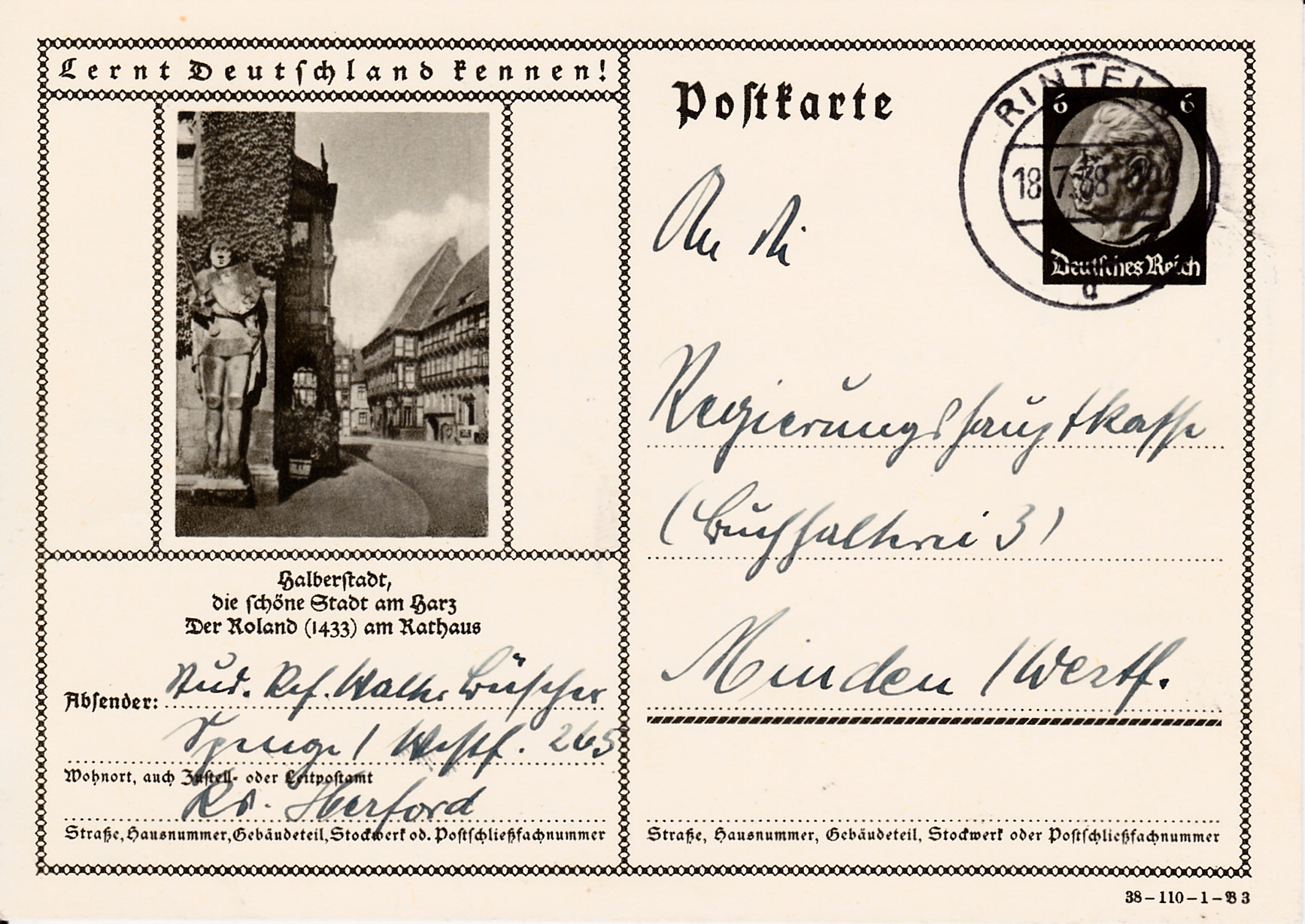 Es folgt noch eine dritte Karte (Serie 110 Bild 3) Halberstadt mit der Abbildung "Roland" am Rathaus.
