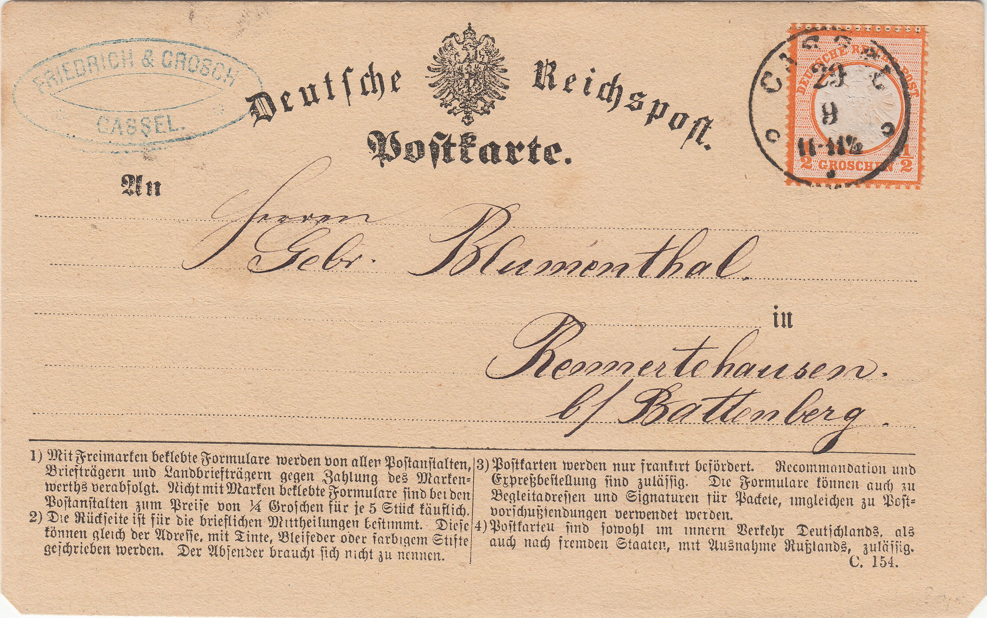Rückseitig zwei Kreisstempel "Battenberg" vom 29.09.1872 abends sowie 30.09.1872 morgens: