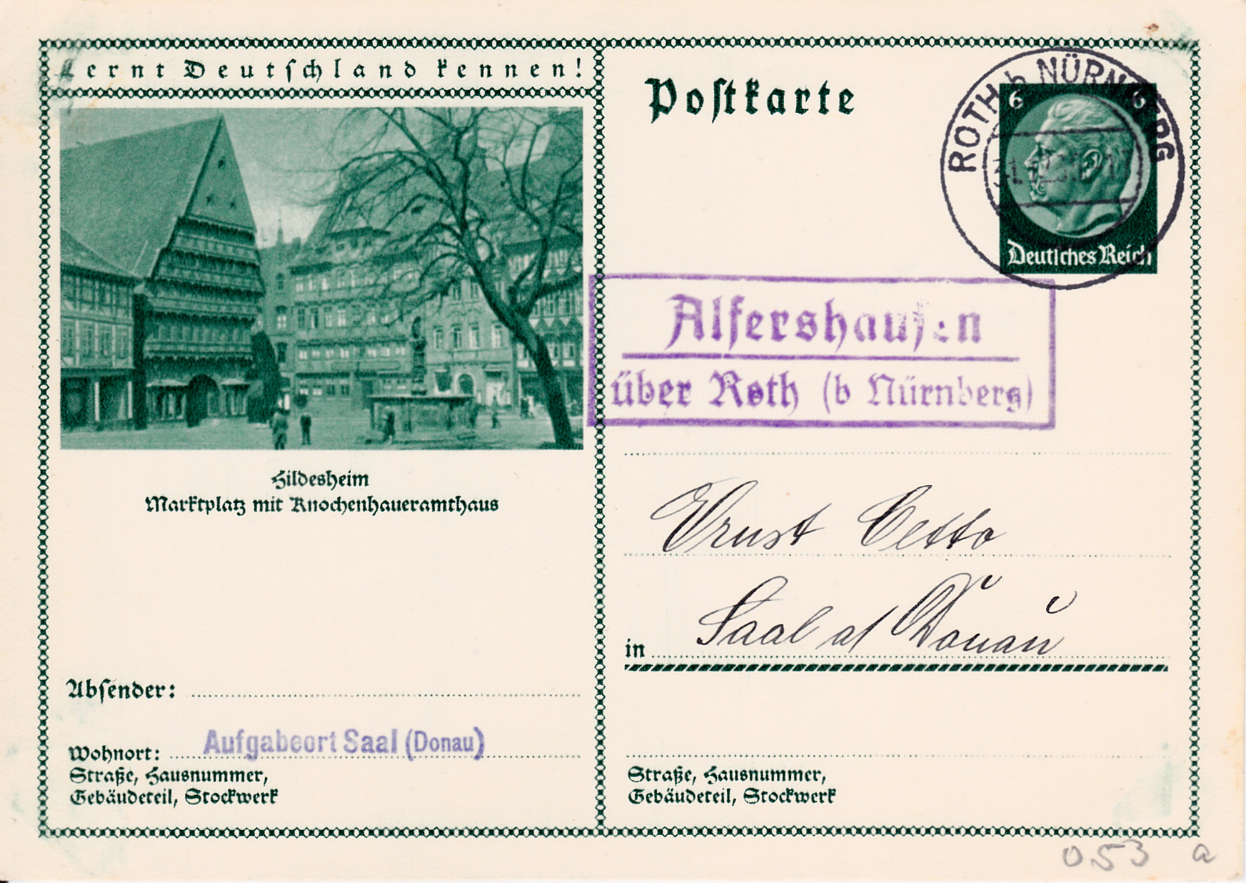 Der Marktplatz aus Hildesheim ist auf dieser Karte (MiNr P 232/53) abgebildet.