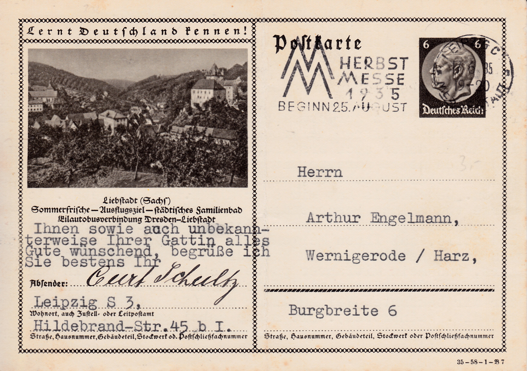 Es folgt eine Karte (Serie 58 Bild 7) mit einem Blick auf Liebstadt und Schloss Kuckuckstein oberhalb von Liebstadt.