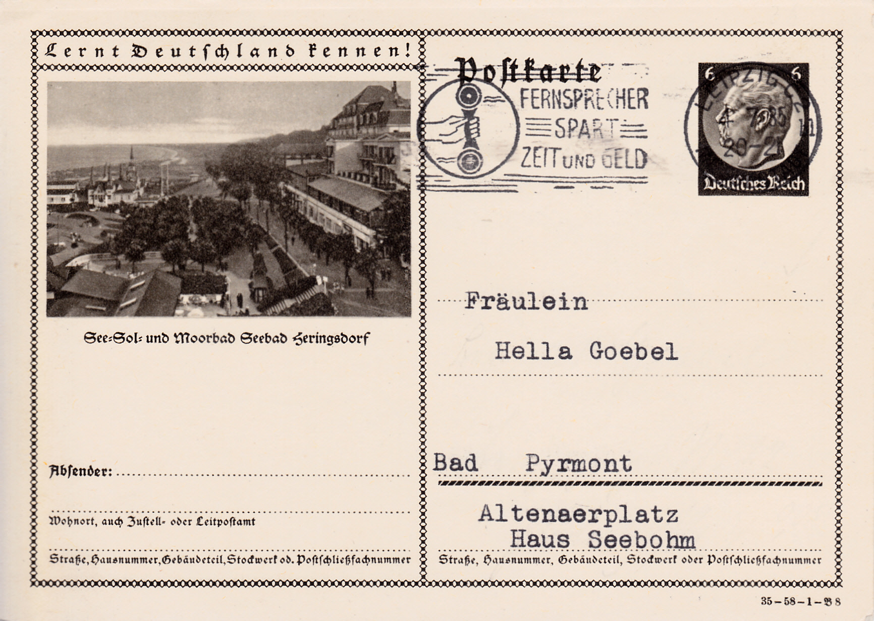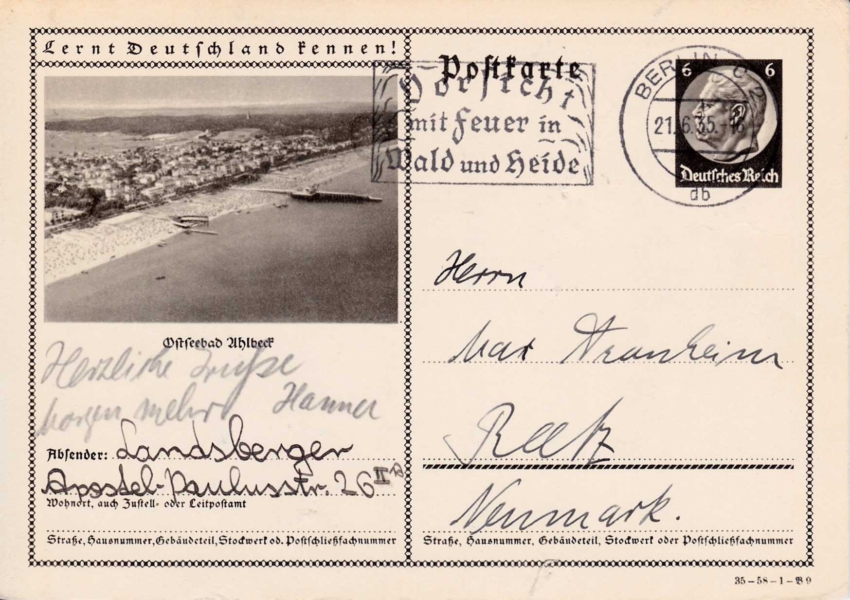 Das Bild auf dieser Karte (Serie 58 Bild 9) zeigt den Strand von Ahlbeck und ist bereits im Jahr 1934 auf einer Karte gezeigt worden.