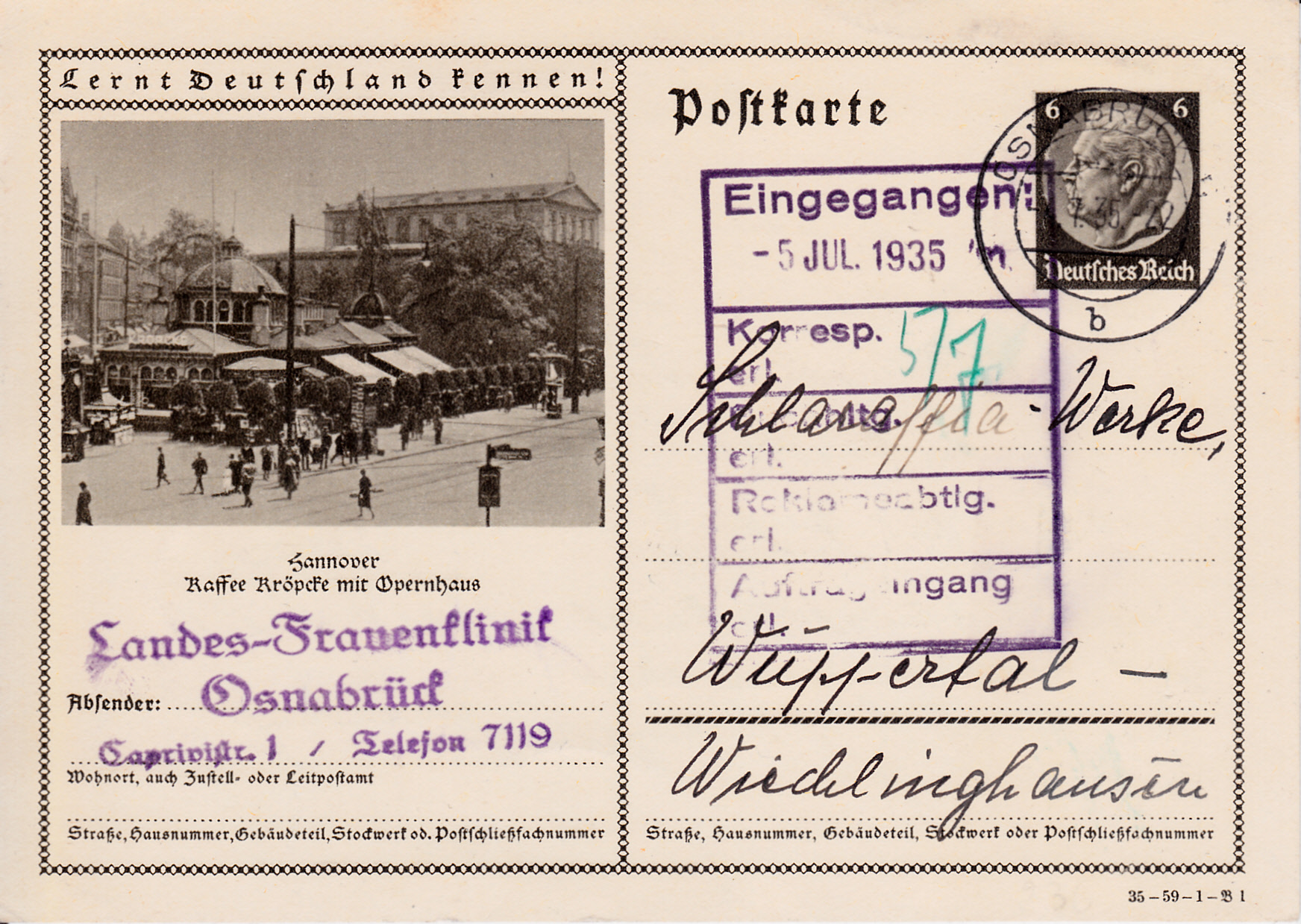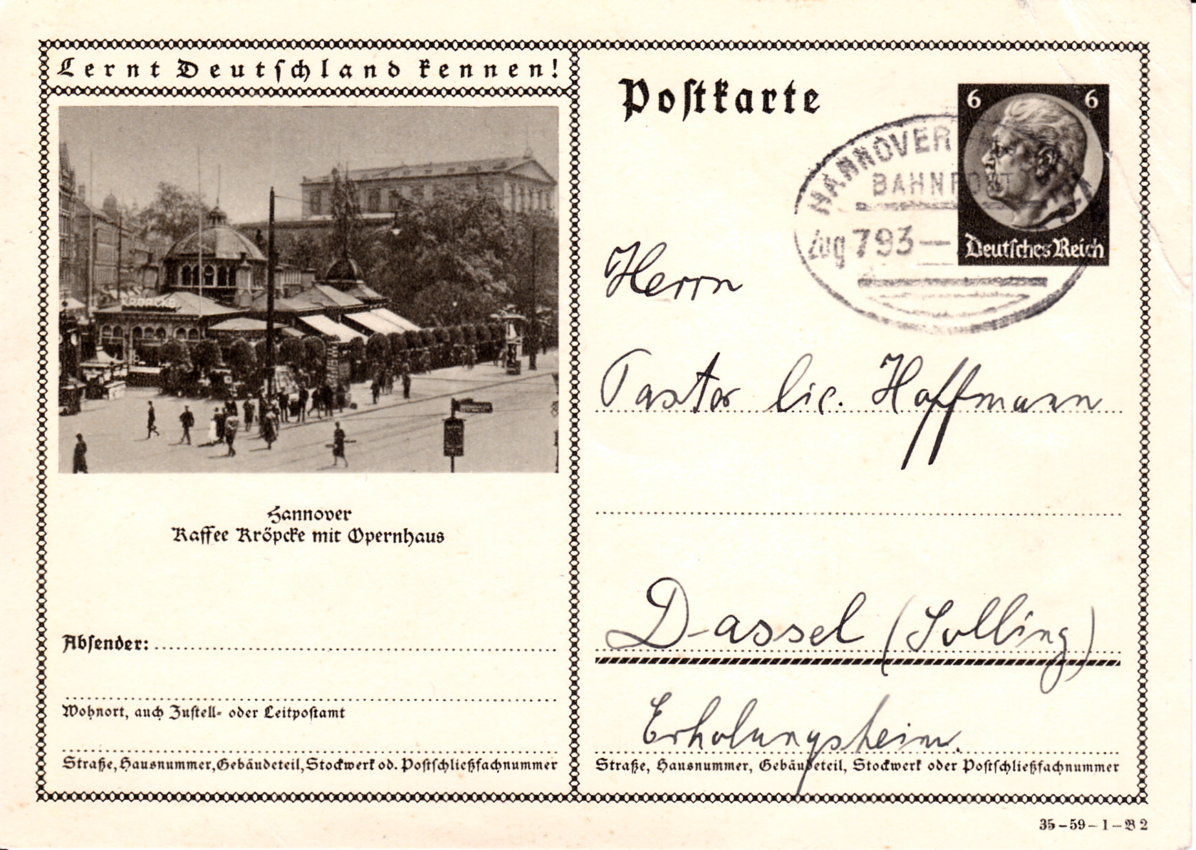 Hannover zeigt auf dieser Karte (Serie 59 Bild 1) erneut die Ansicht mit dem Kaffee Kröpcke und dem Opernhaus in Hannover.