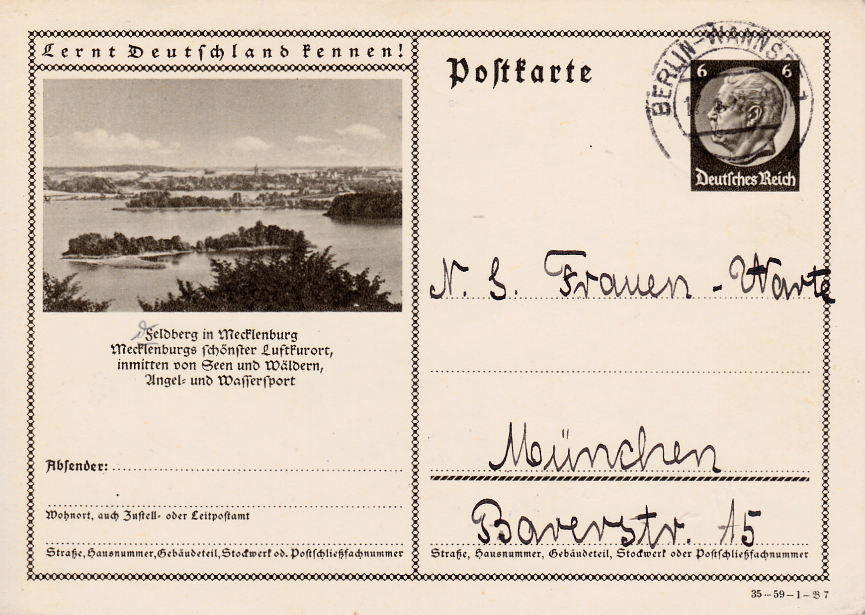 Auf dieser Karte (Serie 59 Bild 7) sehen wir eine Landschaftsfoto aus Feldberg in Mecklenburg.