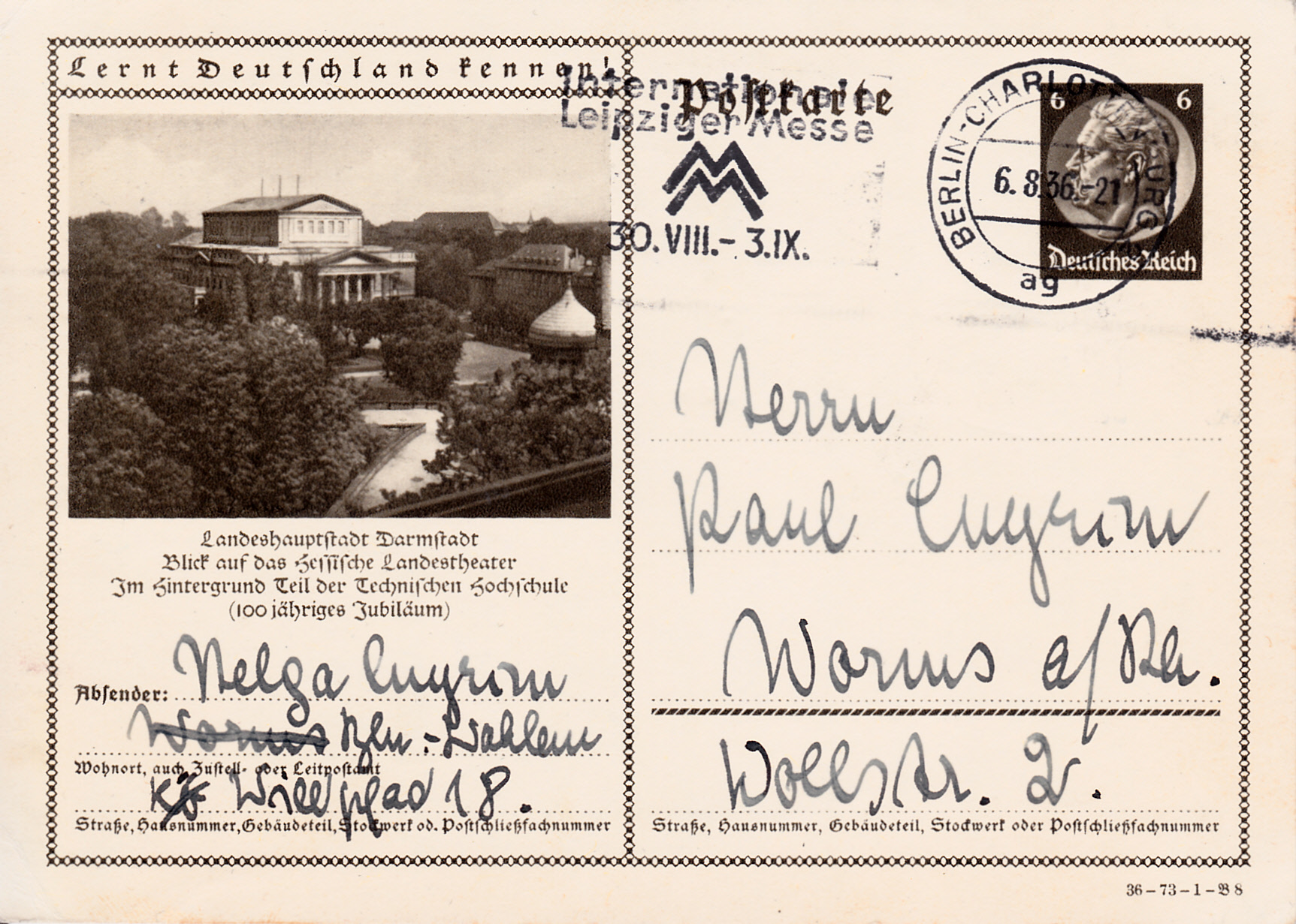 Es gibt in dieser Serie noch eine zweite Bildpostkarte (Serie 73 Bild 8) mit einer Abbildung aus Darmstadt. Auf dem Foto sehen wir das Hessische Landestheater (Heute: Haus der Geschichte).
