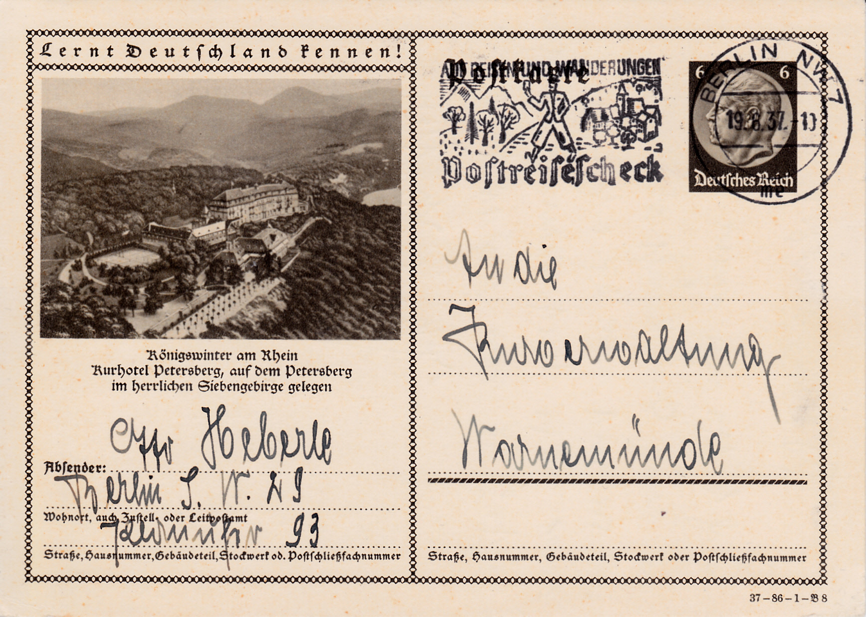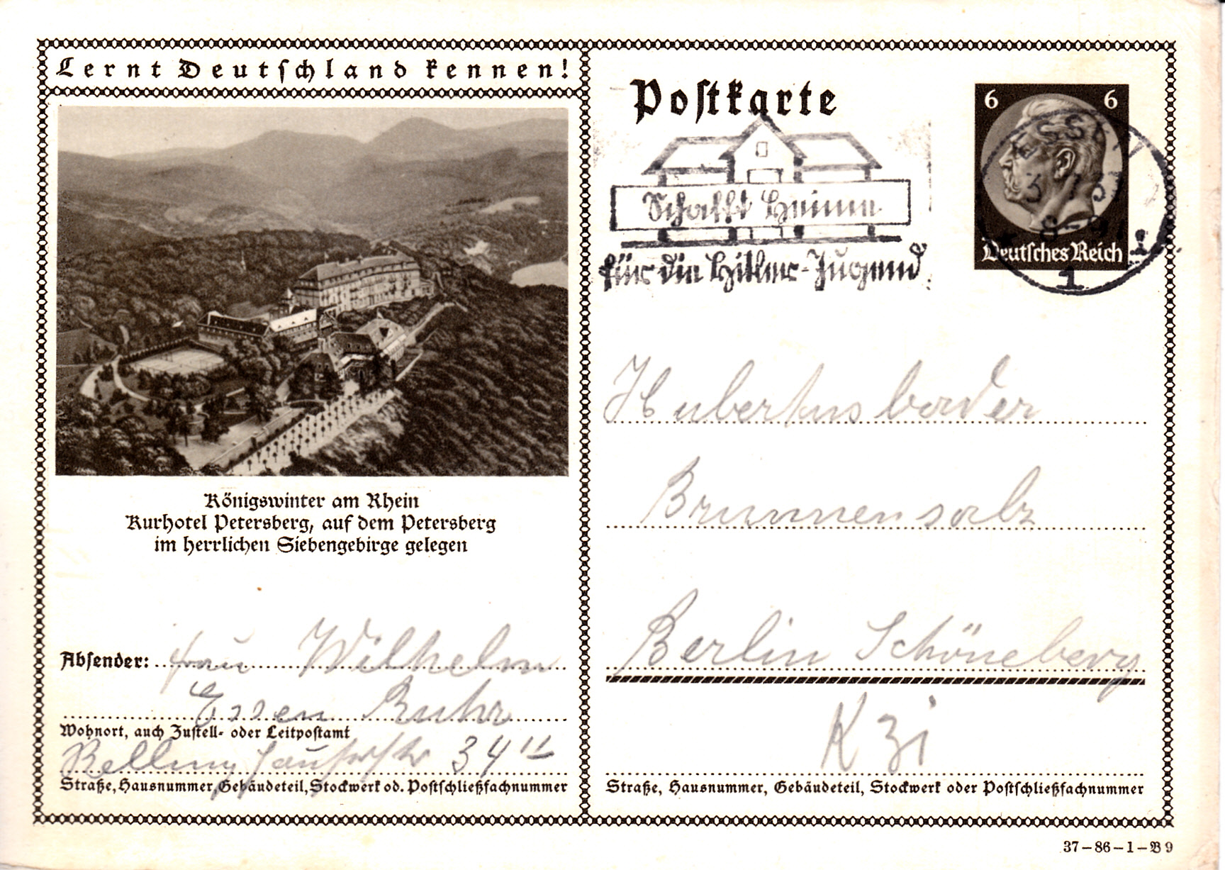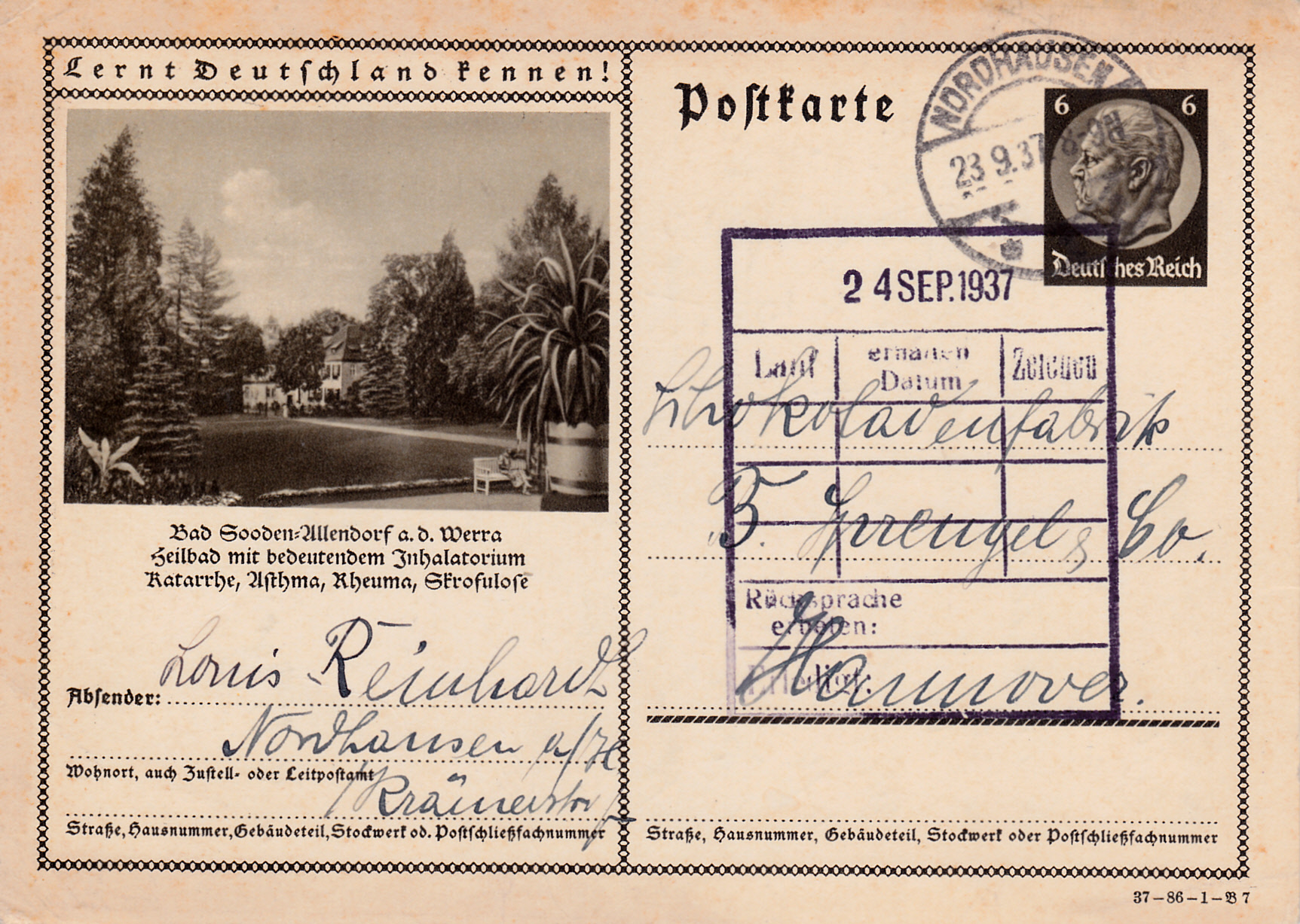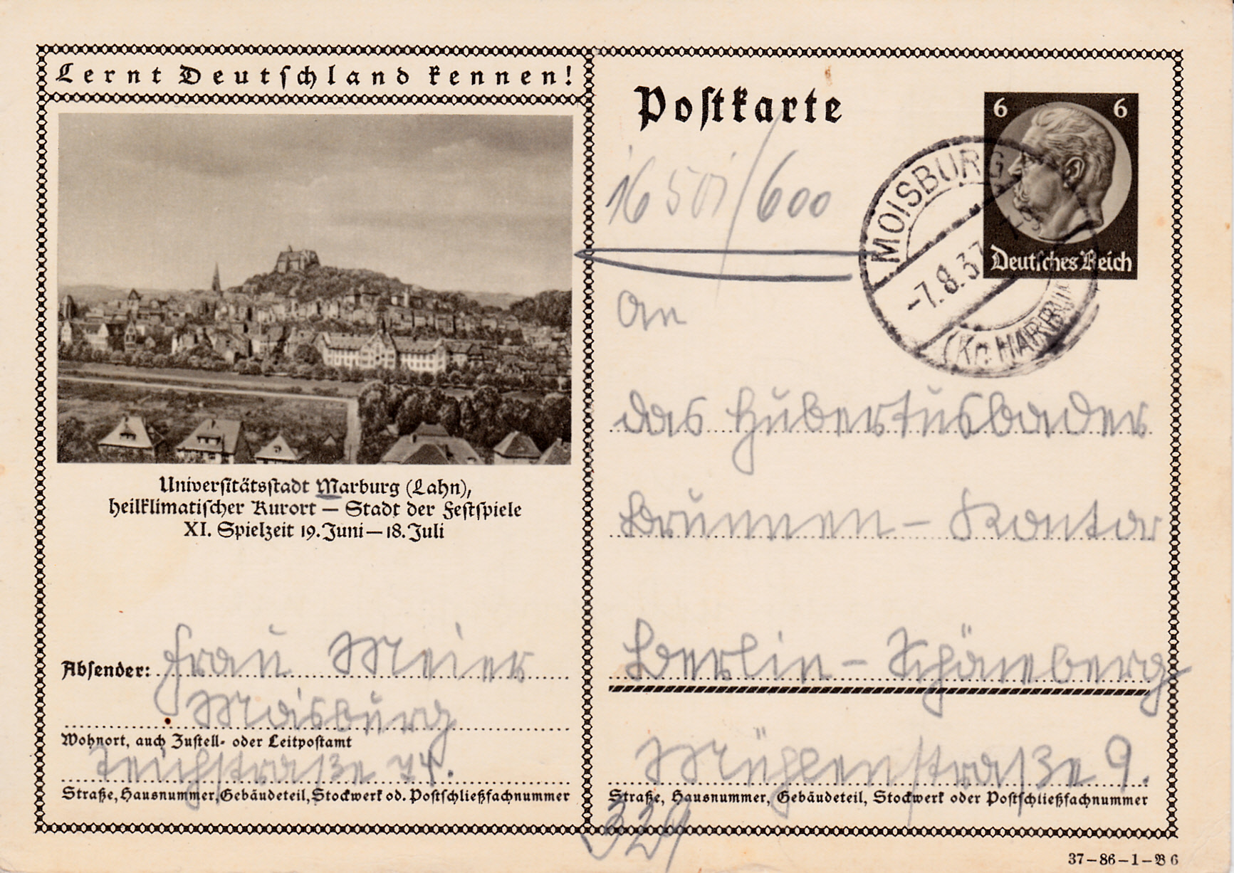 Auch mit der Breslauer Jahrhunderthalle wirbt Breslau auf dieser Karte (Serie 87 Bild 7) für das 12. Deutsche Sängerbundfest 1937 und das Deutsche Turnfest 1938, die beide in Breslau stattfanden. Die Karte ist in Breslau mit einem Sonderstempel gestempelt worden.