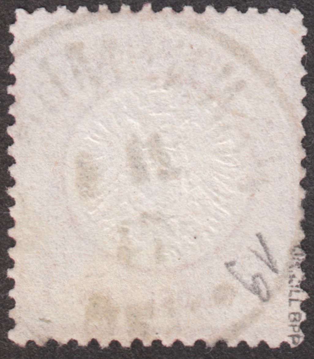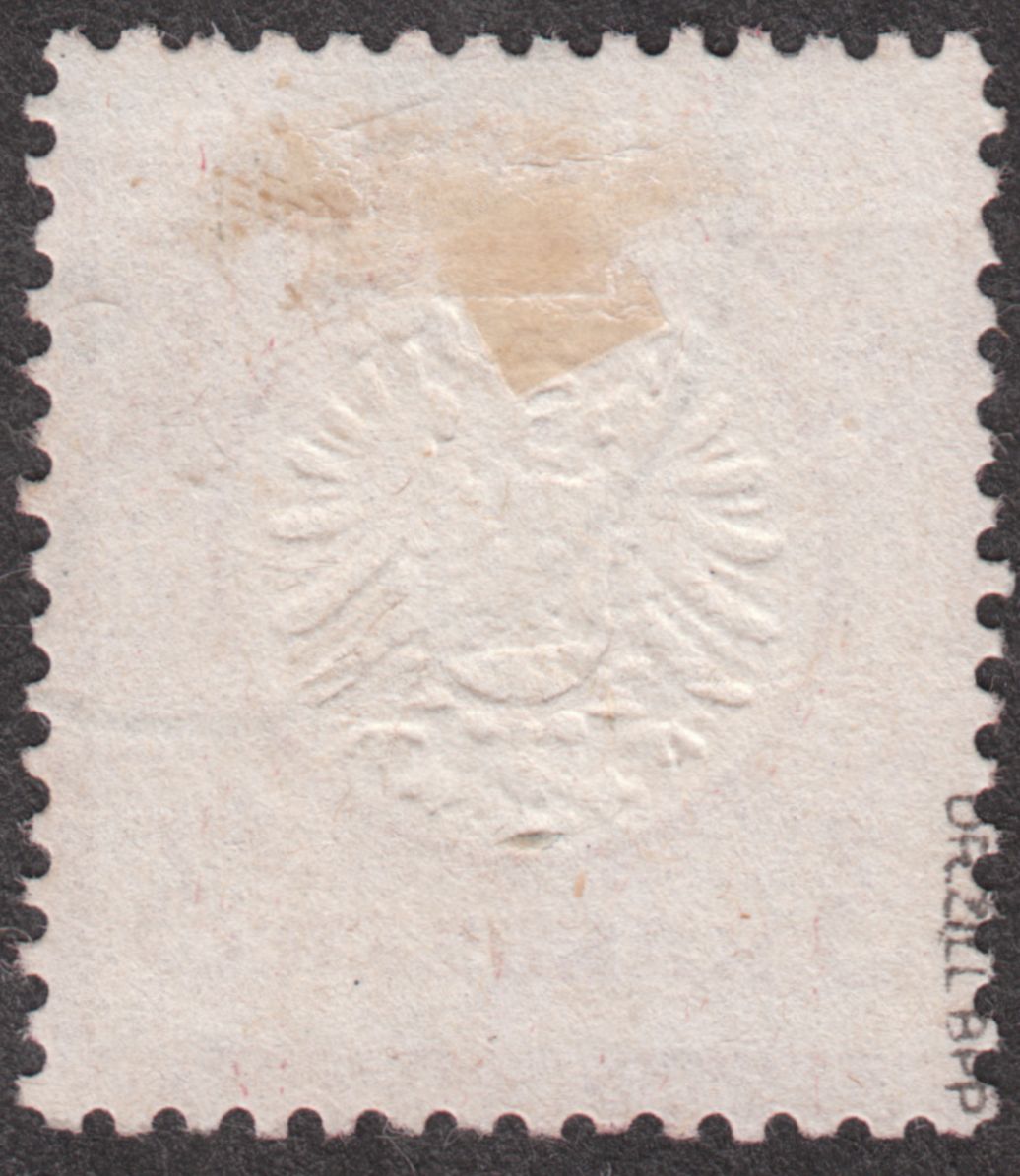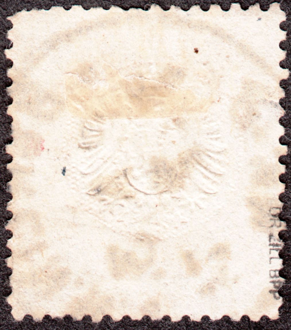 Diese MiNr. 18 wurde im Januar 1875, also zur Zeit der Gültigkeit der Markwährung, nachverwendet und per nachverwendetem, preussischem Zweikreisstempel "COBLENZ", Feuser Pr 592, entwertet: