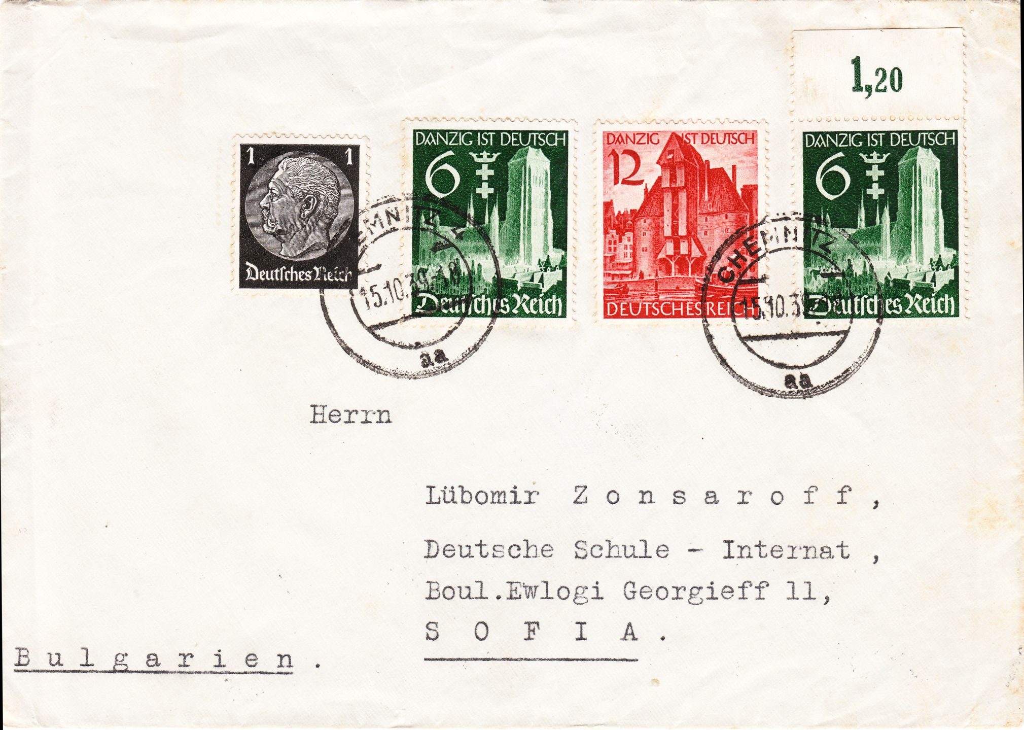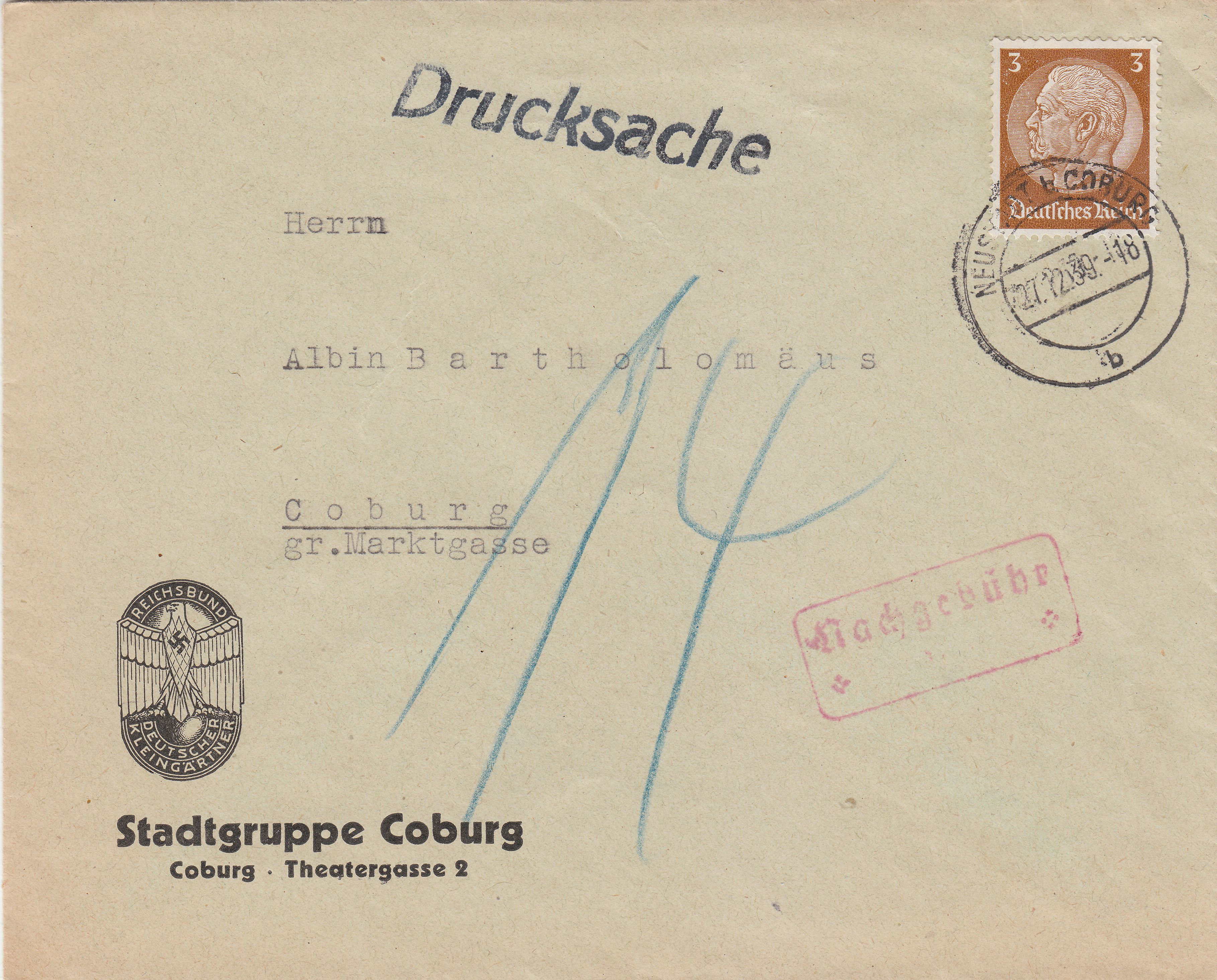 Nur für gewöhnliche Briefe Zuschlagsgebühr 5 Pfg. als Freimarke auf dem Brief.