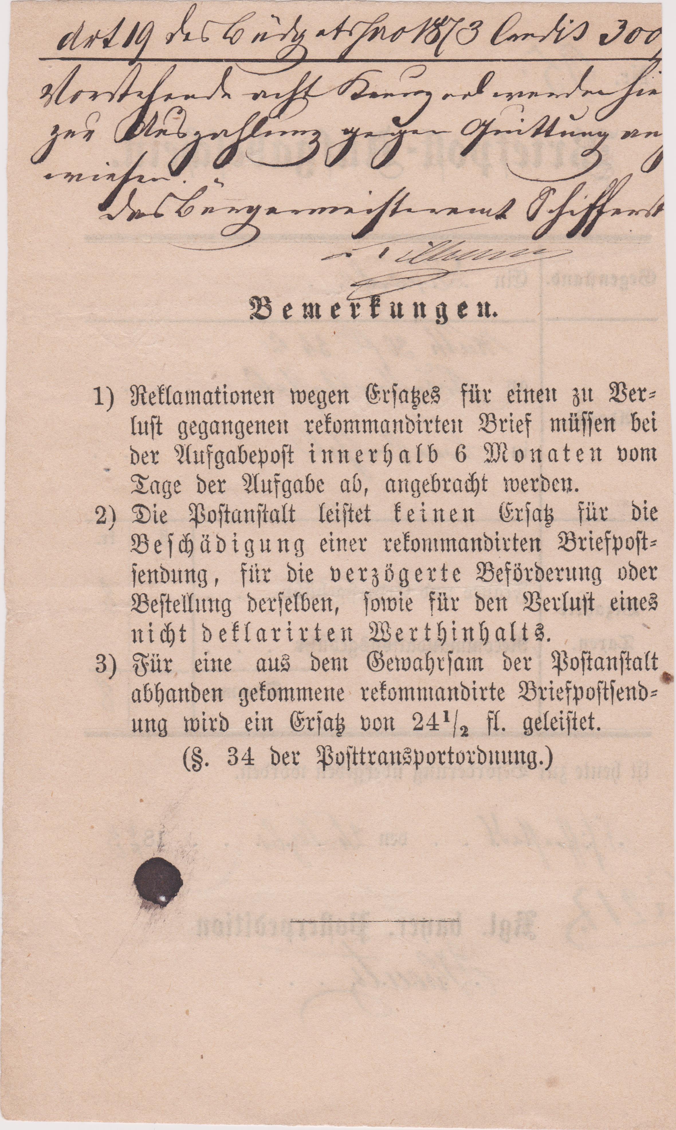 Zweifellos echt ist der am "5 10 73" abgeschlagene, als Feuser Pr 1479 katalogisierte nachverwendete preussische dreizeilige Rahmenstempel "HIRSCHBERG I. SCHLESIEN *".