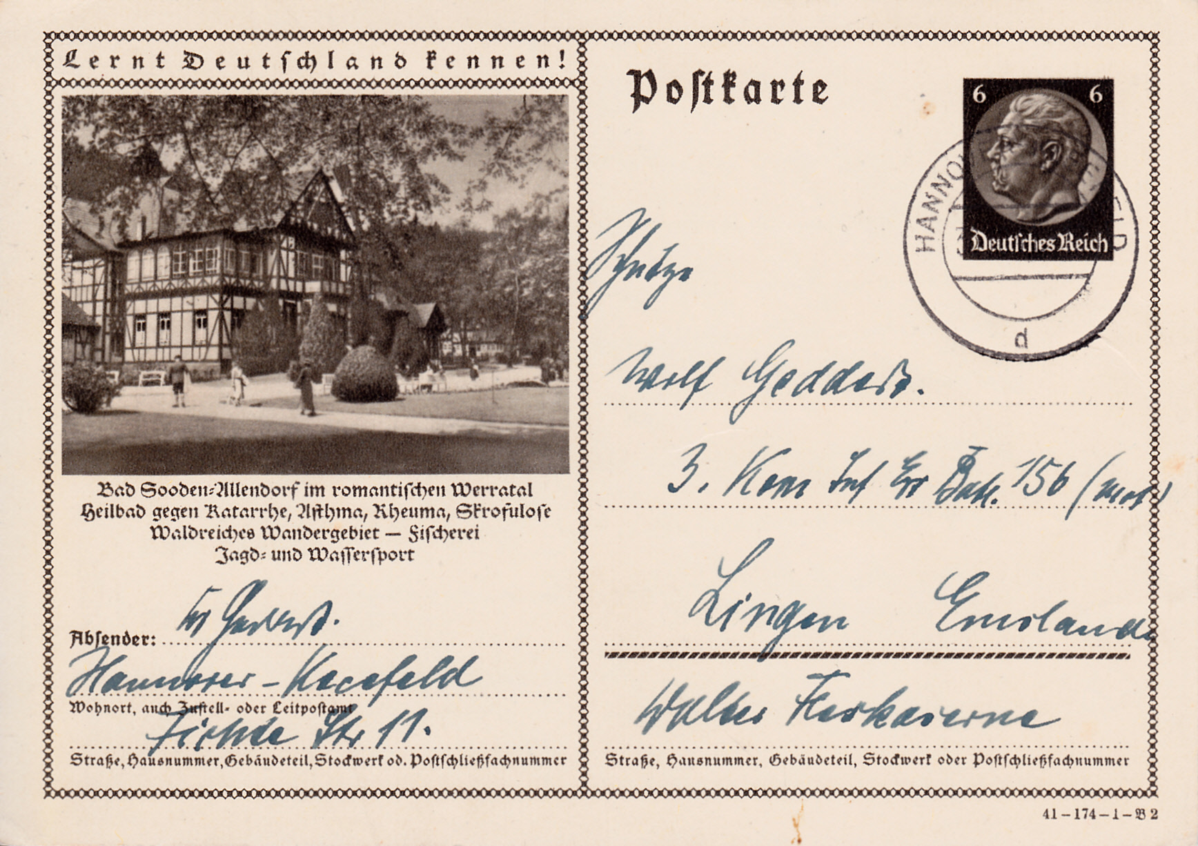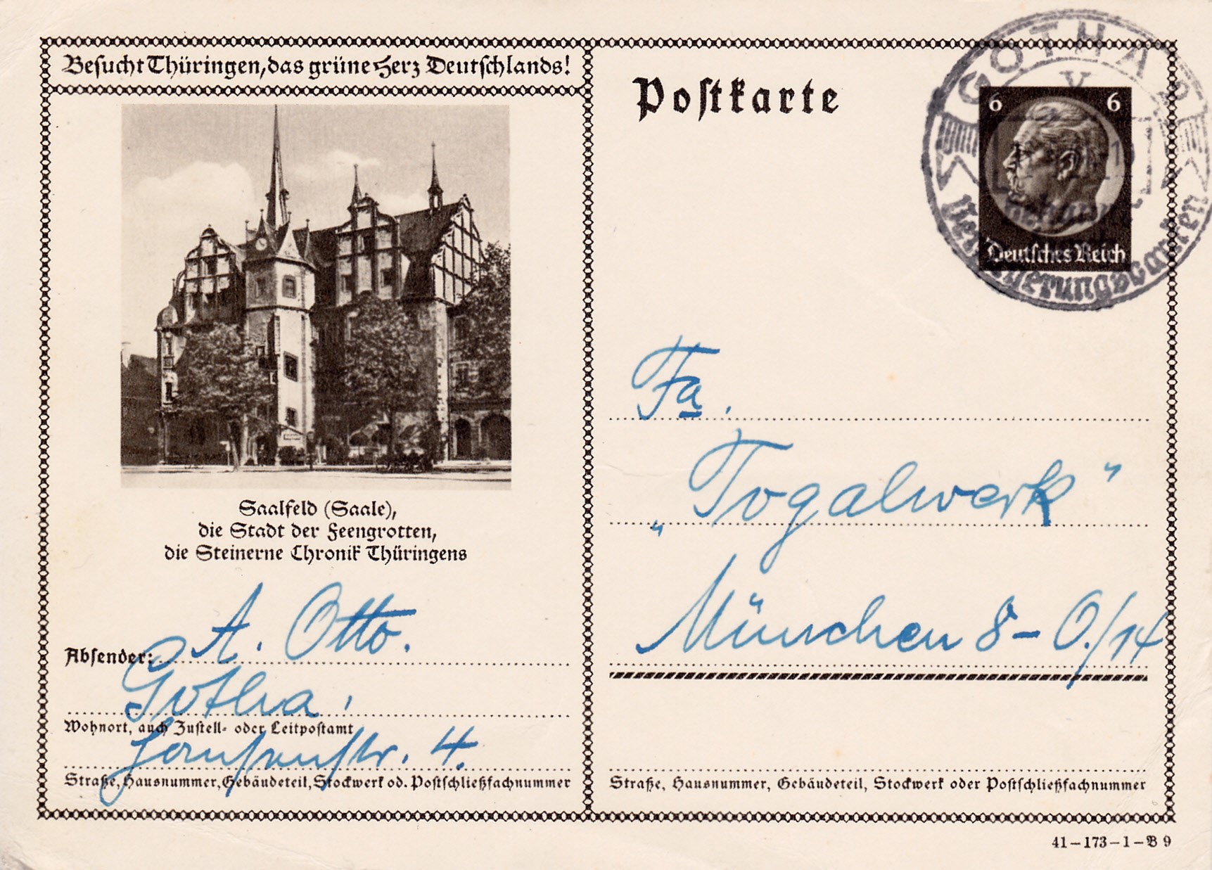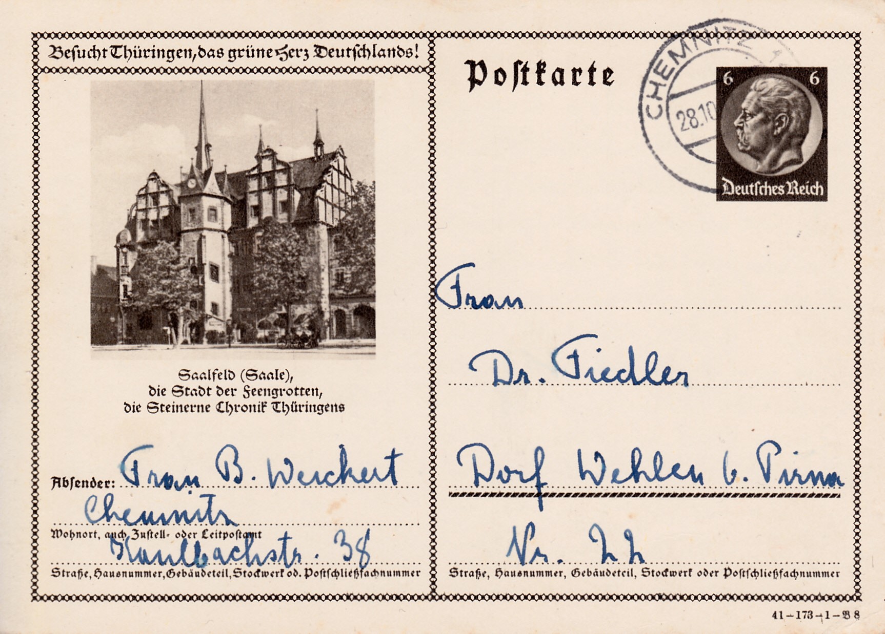 Diese Bildpostkarte 1941 (Serie 173 Bild 4) für Tabarz (Thüringer Wald) unterscheidet sich von einer Vorjahrskarte auch wieder nur im Druckvermerk.