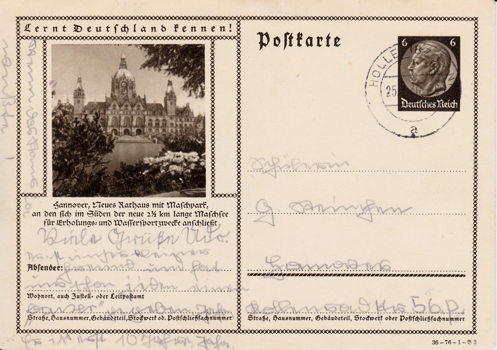 Das Neue Rathaus in Hannover ist das Rathaus der niedersächsischen Landeshauptstadt. Der wilhelminische, schlossähnliche Prachtbau wurde von 1901 bis 1913 errichtet. Auf dieser Bildpostkarte (Serie 76 Bild 3) ist eine Ansicht des Neuen Rathauses zu sehen.