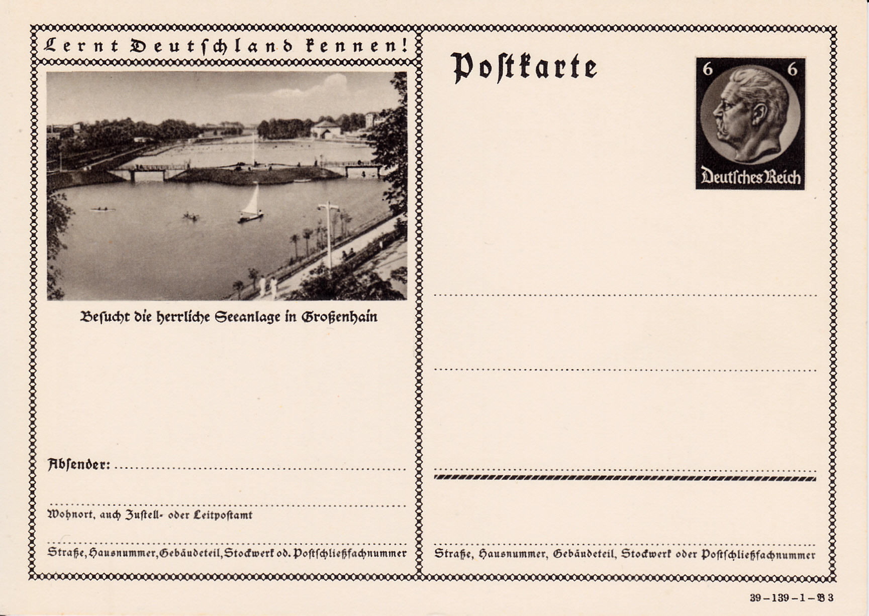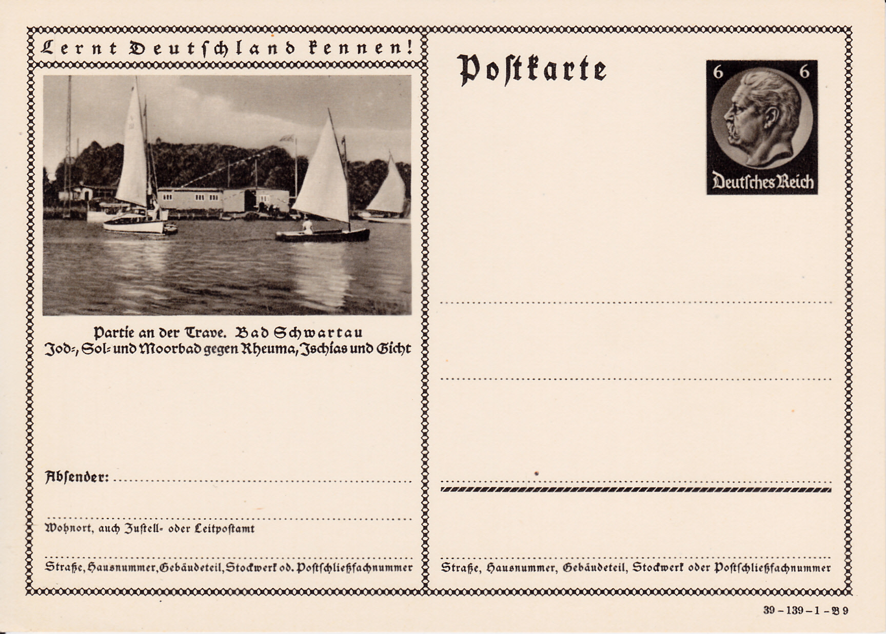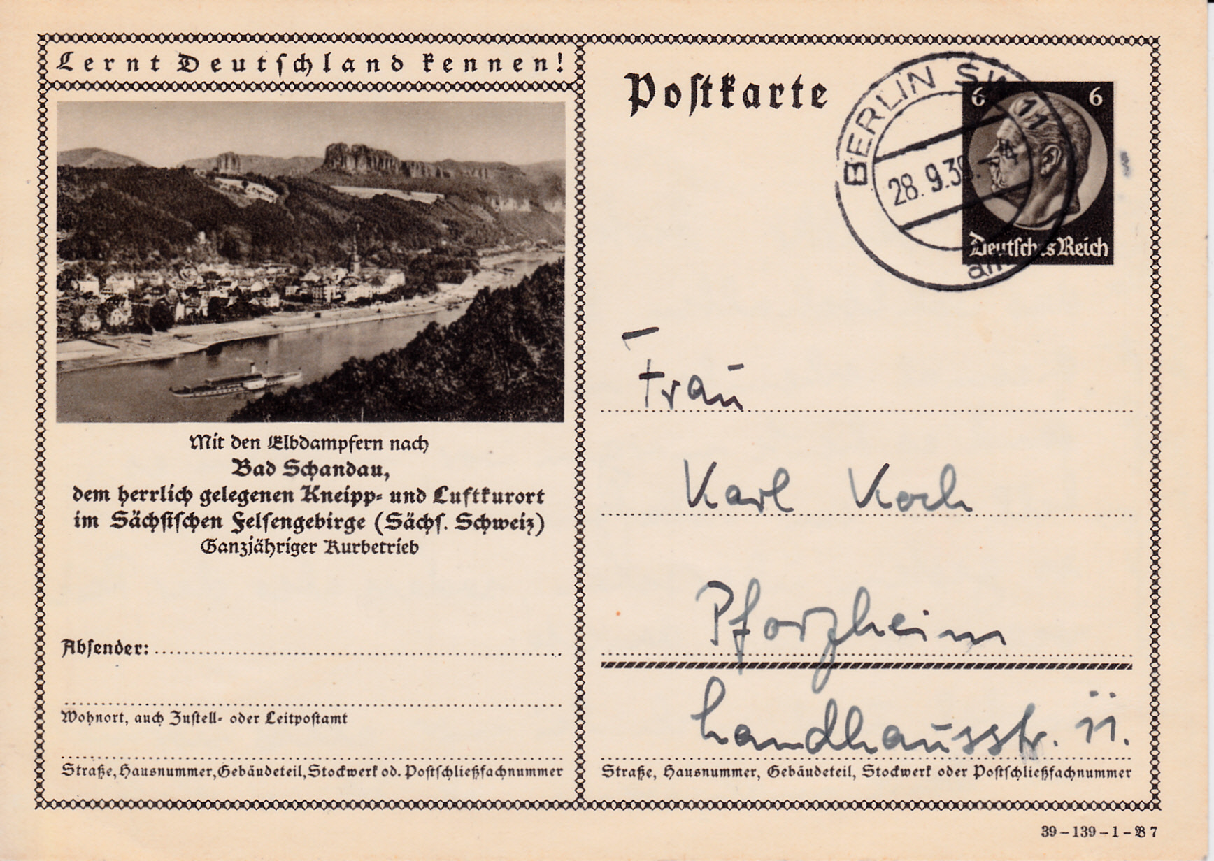 Auch in der Serie des Jahres 1939 gibt es eine Karte (Serie 139 Bild 7) mit dem schon seit Jahren benutzten Foto, das für eine Fahrt mit einem Elbdampfer nach Bad Schandau wirbt.