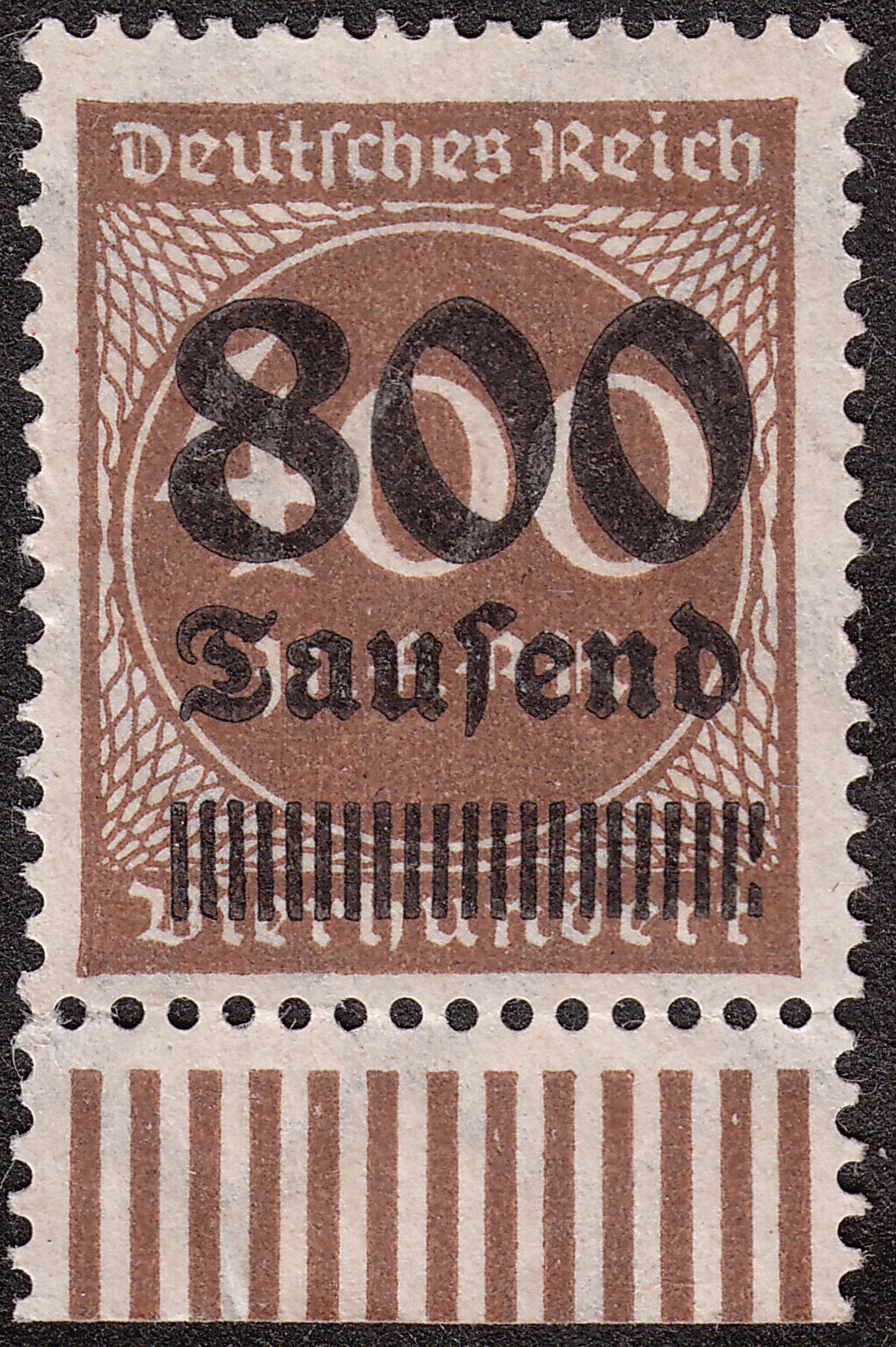 Hier eine MiNr. 305 A vom Unterrand mit Walzenstrichen, die ich heute beim Vereinstauschtag in Aachen für 0,10 € in einem Steckbuch gefunden habe: