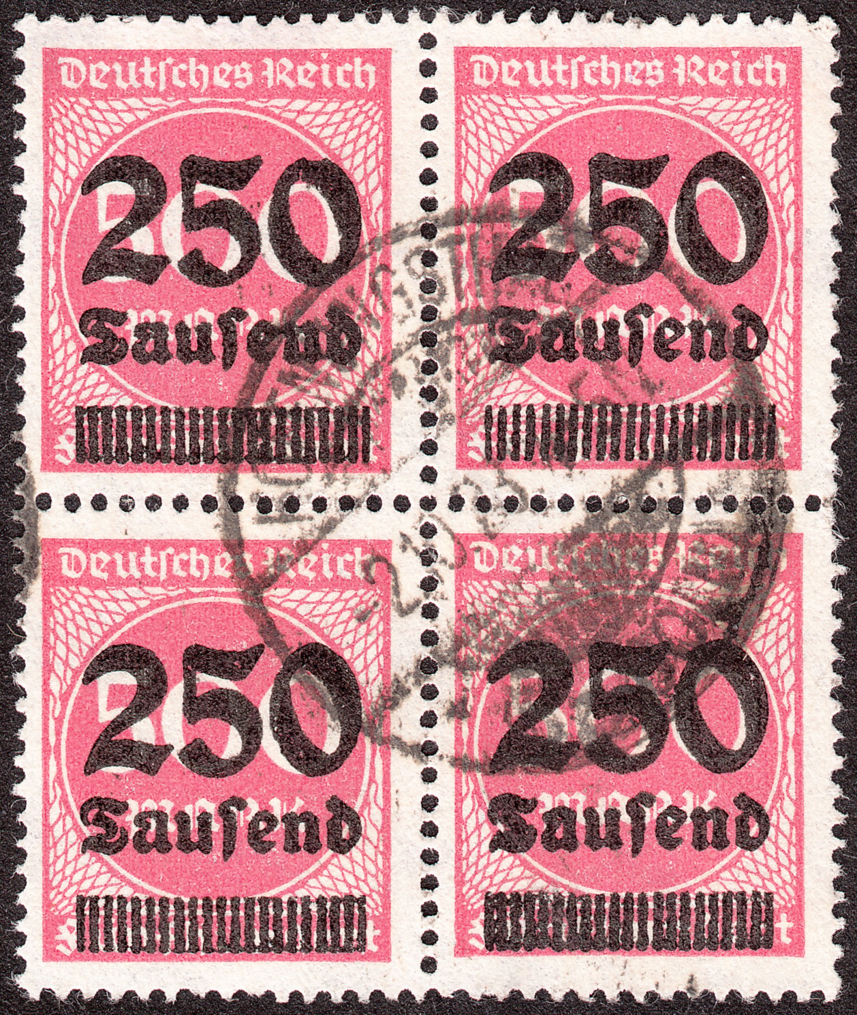 Hier eine MiNr. 295 im Viererblock gestempelt, laut rückseitigen Prüfstempeln der Arge "echt im Block geprüft":