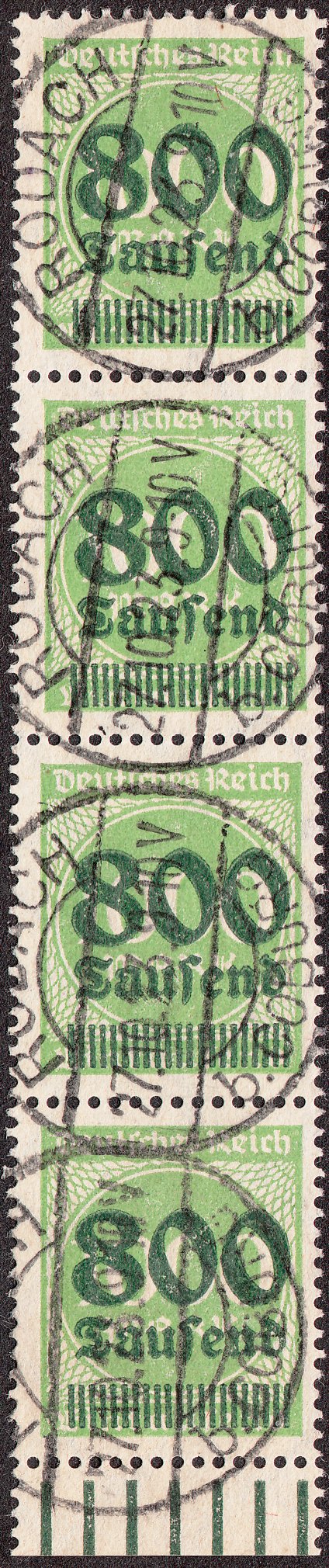 MiNr. 308 A a W UR gestempelt im Viererstreifen:
