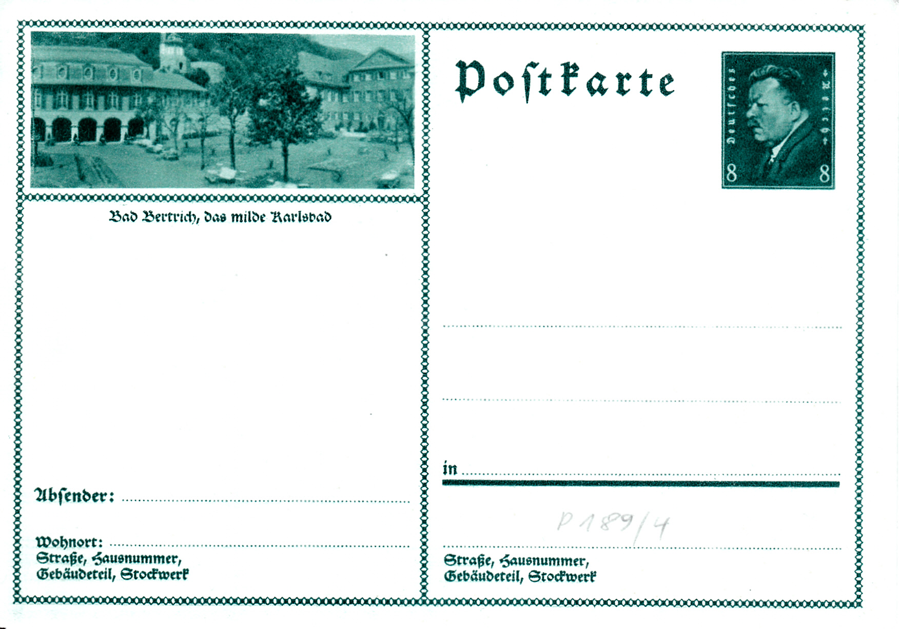 Ein Foto aus Bad Bertrich ist auf dieser Karte (MiNr P 189/04) zu sehen.