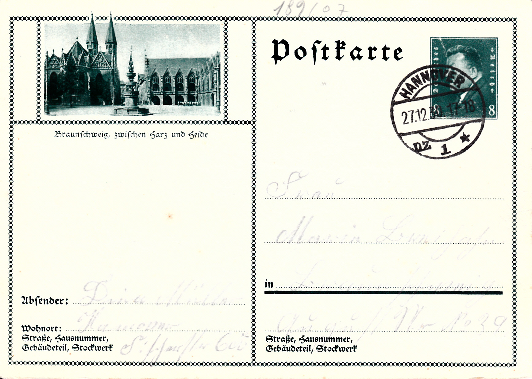 Auf dieser Bildpostkarte (MiNr P 189/07) ist ein Ansicht aus Braunschweig abgebildet.
