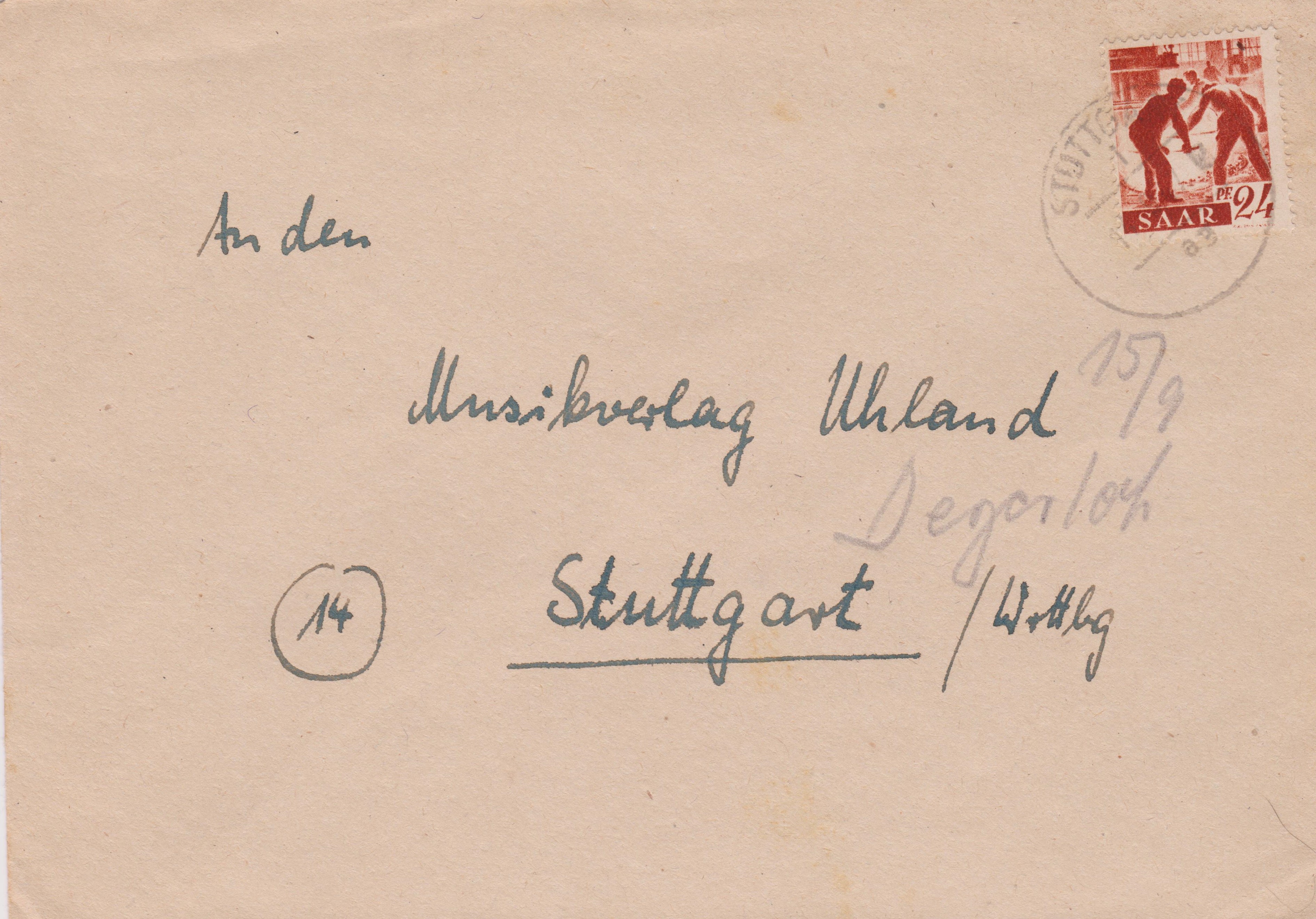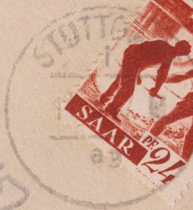 Dieser nach Stuttgart adressierte Brief hat einen Absender aus "Dillingen-Saar", was die Frankatur, eine Saarland MiNr 215 Z, erklärt: