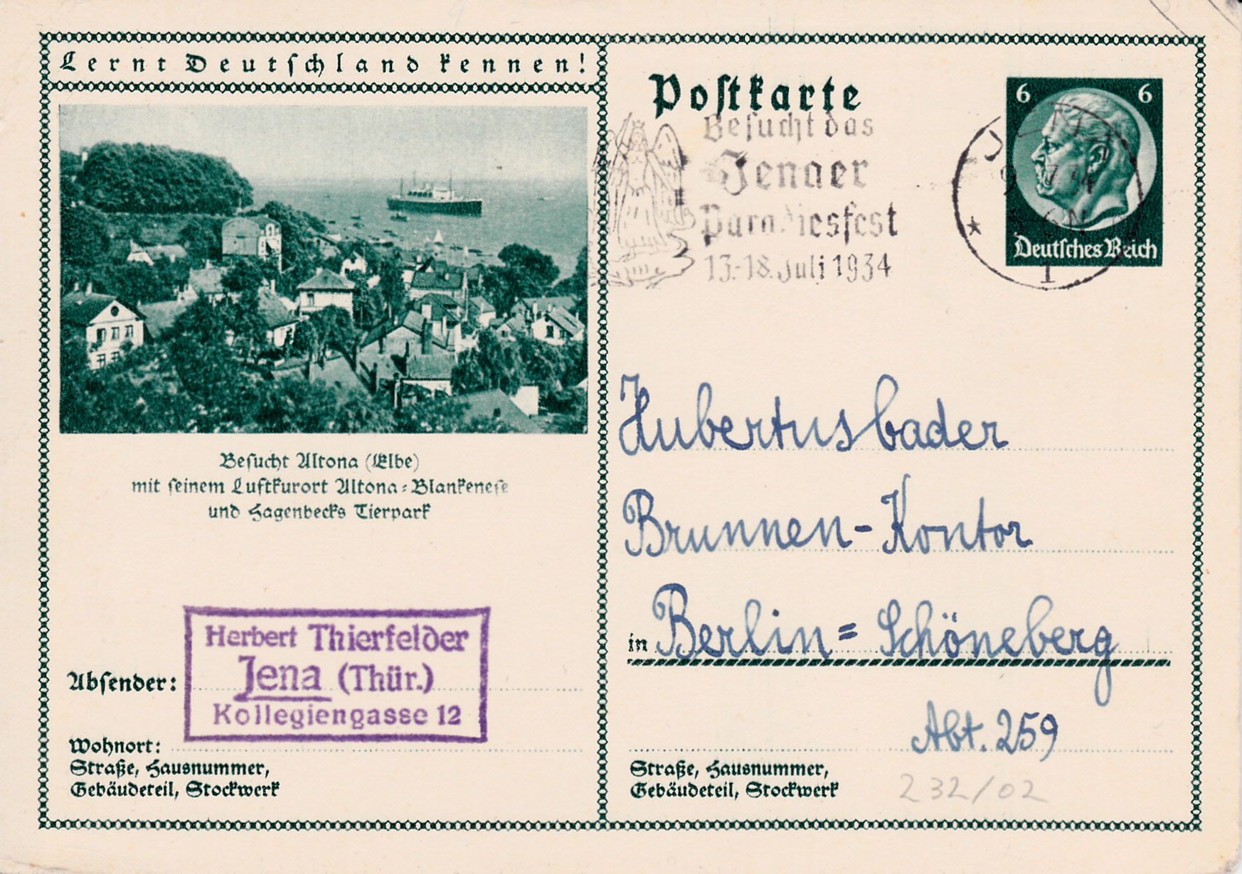 Die Bildpostkartenserie 1934 (MiNr P 232) mit dem Wertstempel "Hindenburg" umfasst insgesamt 144 verschiedene Bilder. Die Karten unterscheiden sich von den beiden vorhergehenden Ausgaben im Schriftzug "Postkarte":