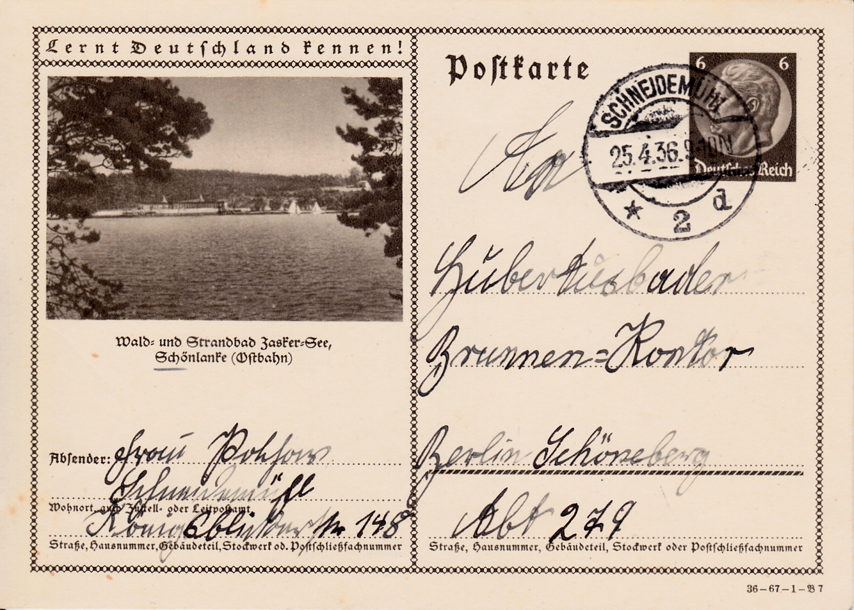 Ich beginne mit der Karte mit dem Druckvermerk 36-67-1-B1 (Ausgabejahr 1936-Serie 67-Druckplatte 1-Bild 1; bei weiteren Karten nenne ich jeweils die Serie und die Bildnummer, die Druckplattennummer nur, wenn es verschiedene Druckplattennummern bei der jeweiligen Serie gibt).