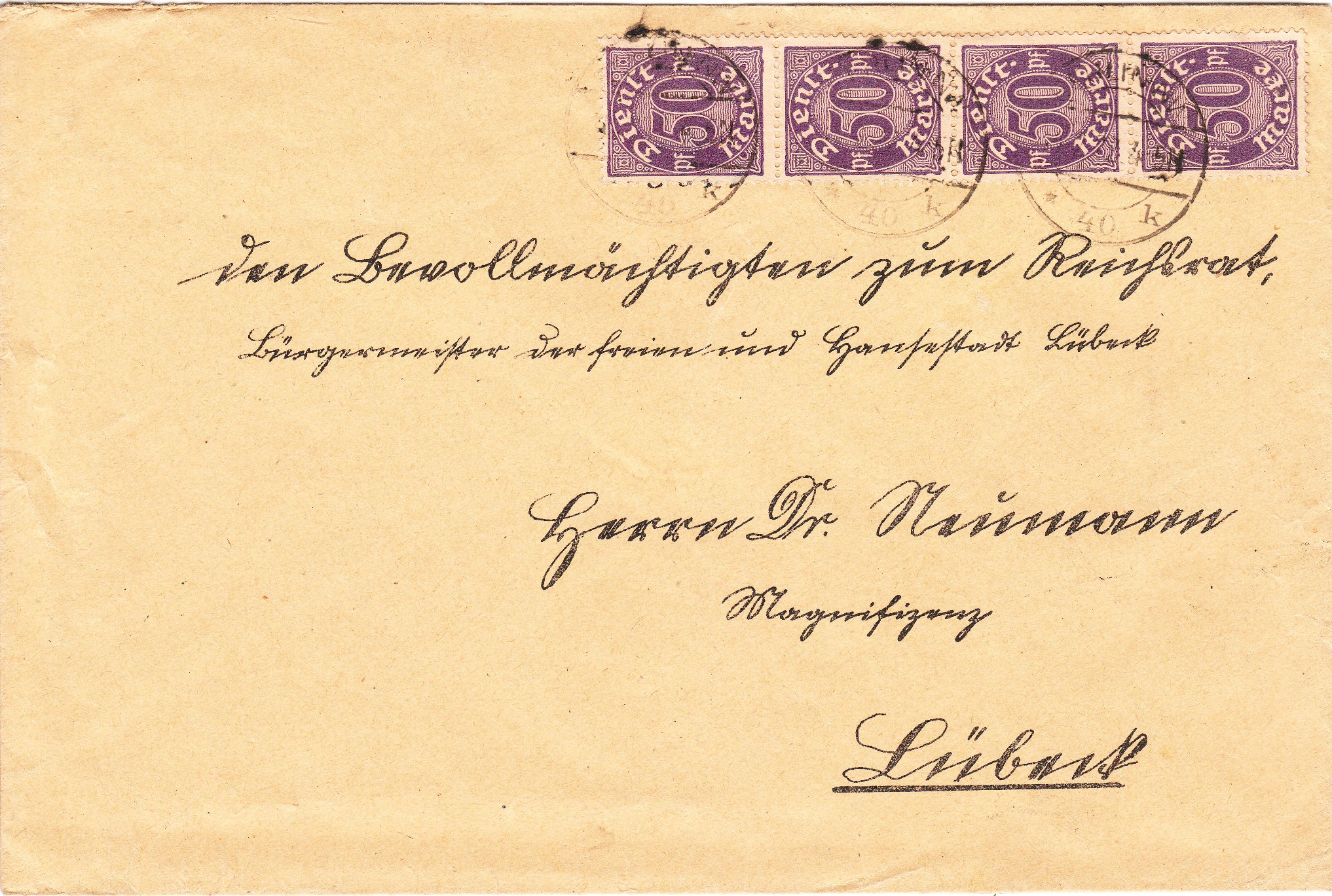 Als Einzelfrankatur diente am 03.11.1921 eine MiNr. 41 für einen Brief bis 20 Gramm im Fernverkehr.