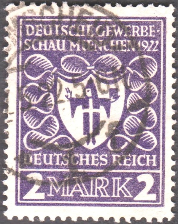 Deutsches Reich MiNr. 199 bis 204 erschienen am 02.04.1922 aus dem Anlaß "Deutsche Gewerbeschau Müchen" und zeigen das Münchner Stadtwappen.
