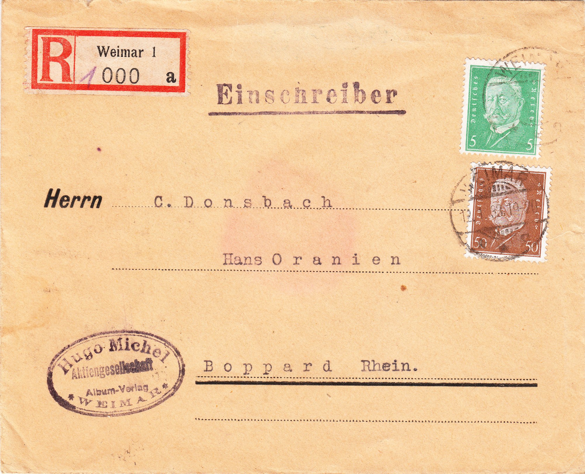 Auffallend ist bei diesem Beleg der Einschreibzettel: