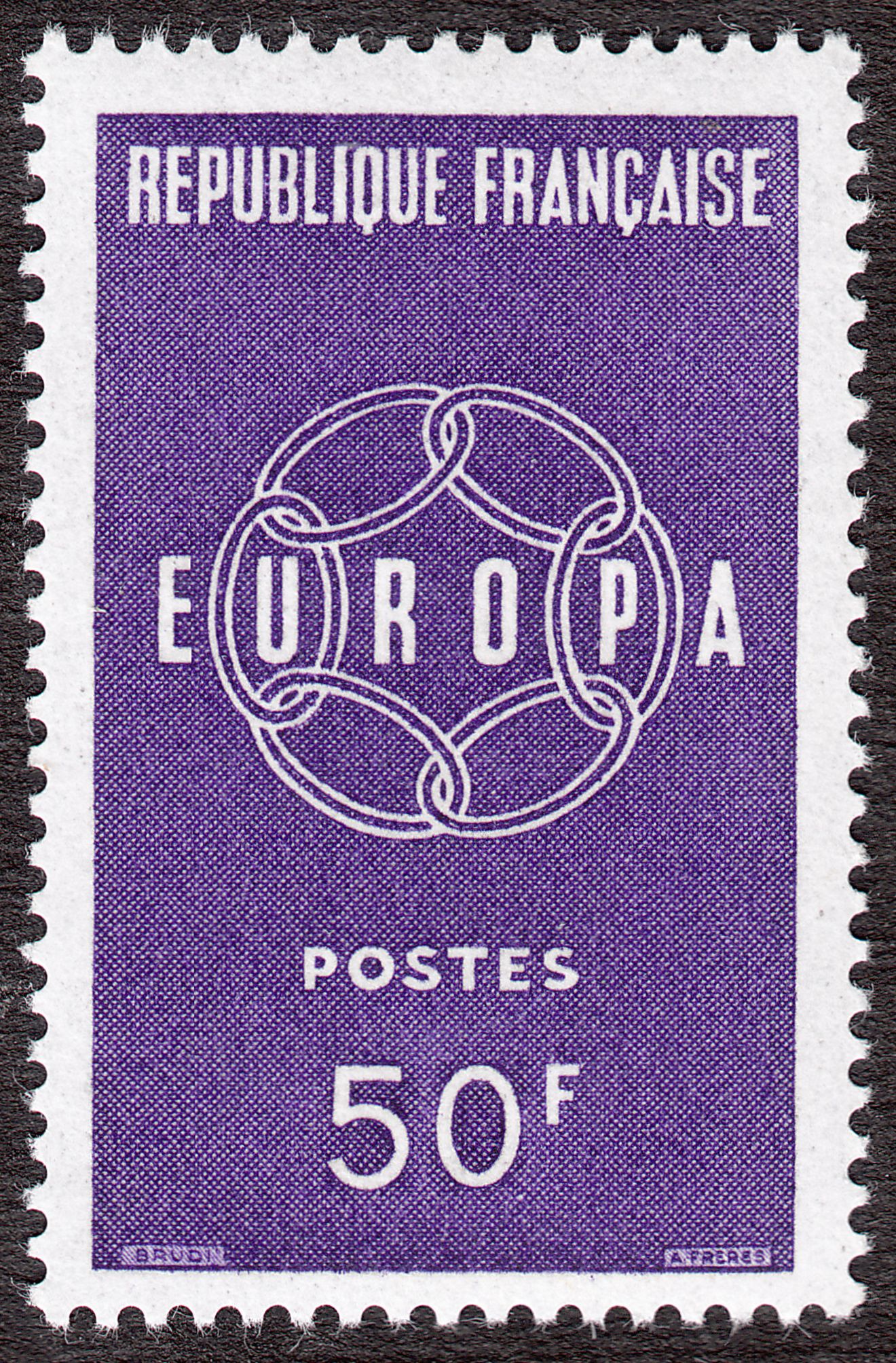 Hier die Europamarke 1959 aus Frankreich der Wertstufe zu 50 Francs, katalogisiert als Frankreich MiNr. 1263:
