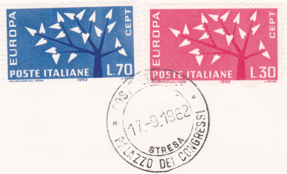Briefstück mit den beiden Europamarken 1962 aus Italien mit einem Tagesstempel aus Stresa.