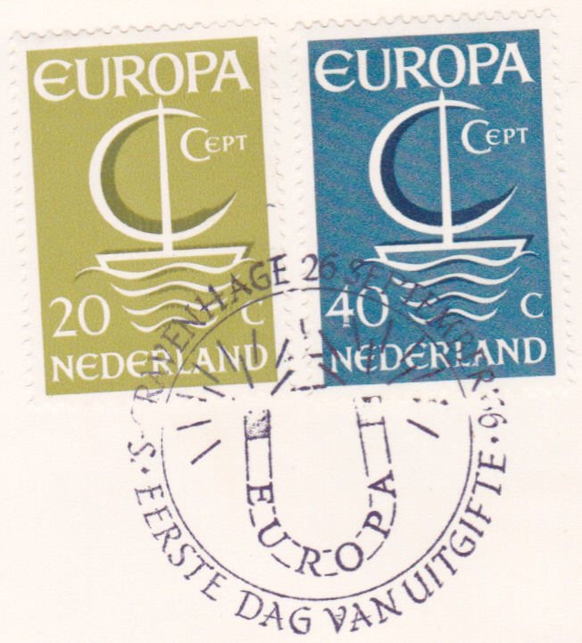 Briefstück mit den beiden Europamarken 1966 aus den Niederlande mit dem Ersttagsonderstempel aus ’s-Gravenhage.