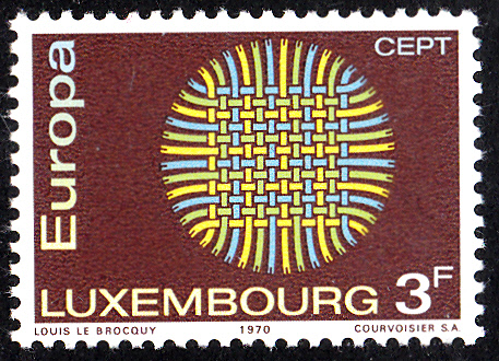 In Luxemburg erschienen die Europamarken 1970 am 4. Mai 1970. Hier die Marke zu 3 Fr mit dem Gemeinschaftsmotiv "Flechtwerk als Sonnensymbol", die in einer Auflage von 1 000 000 Stück erschien.