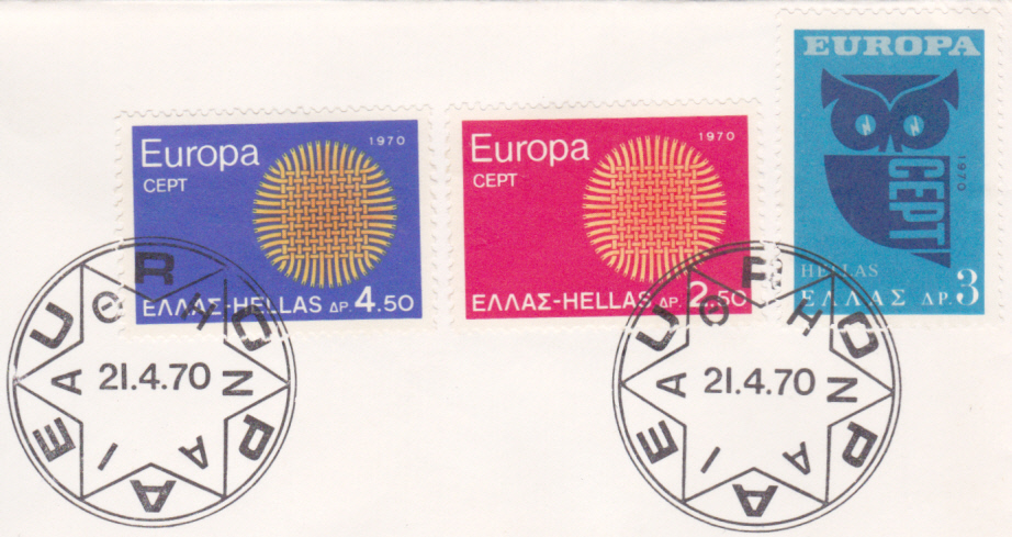 Für das Ausgabejahr 1970 wurde beschlossen, dass jedes Land eine Europamarke ohne das einheitliche Design ausgeben durfte. Lediglich Griechenland machte Gebrauch von dieser neuen Option.