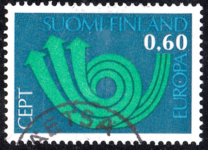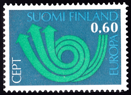 In Finnland ist eine Europamarken 1973 am 30. April 1973 mit dem Gemeinschaftsmotiv "Stilisiertes Posthorn" erschienen. Hier dieser Wert zu 0,60 M, der in einer Auflage von 4 000 000 Stück erschien.