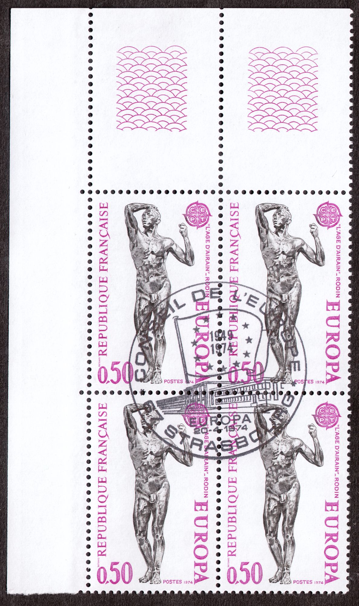 Der 0,50 Franc-Wert der Europamarkenausgabe 1974 mit dem Motiv "L´Age d´Airain", Skulptur von Auguste Rodin (1840-1917), wurde hier als EF auf einem Brief von Straßburg nach Ludwigshafen verwendet. Die Marke wurde mit einem Sonderstempel zur "Foire Europeene" gestempelt. Die "Europäische Messe" ist eine Veranstaltung, die jährlich im September in Straßburg in Frankreich stattfindet und den Besuchern eine Vielzahl von Konsumgütern anbietet.