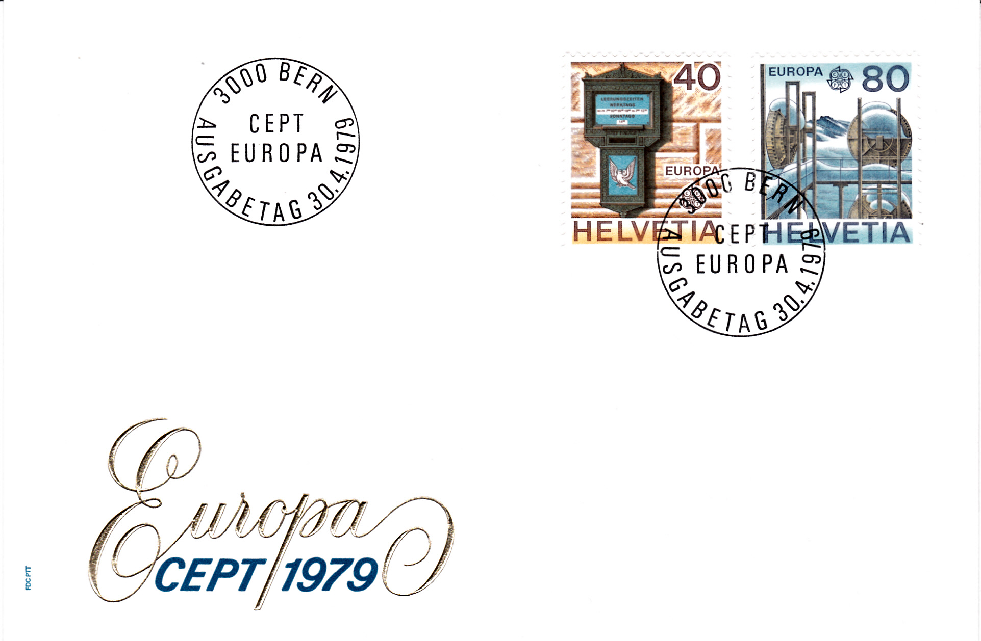 In der Schweiz erschienen die Europamarken 1979 zum Gemeinschaftsthema "Geschichte des Post- und Fernmeldewesens" am 30. April 1979. Hier die Marke zu 80 Rappen mit der Abbildung der Alpinen Relaisstation Jungfraujoch. Die Auflage betrug 11 241 000 Stück.
